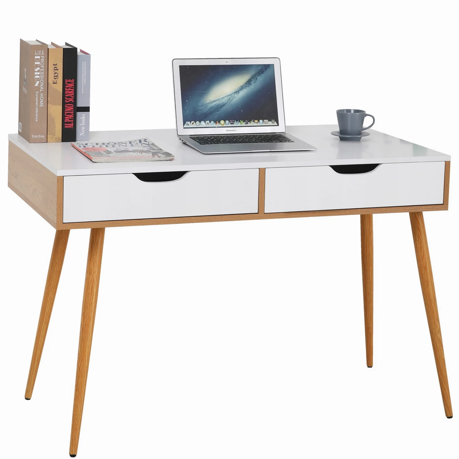 Masa de birou nex home masa de birou cu 2 sertare, jumi, 110x50x75 cm, alb/stejar