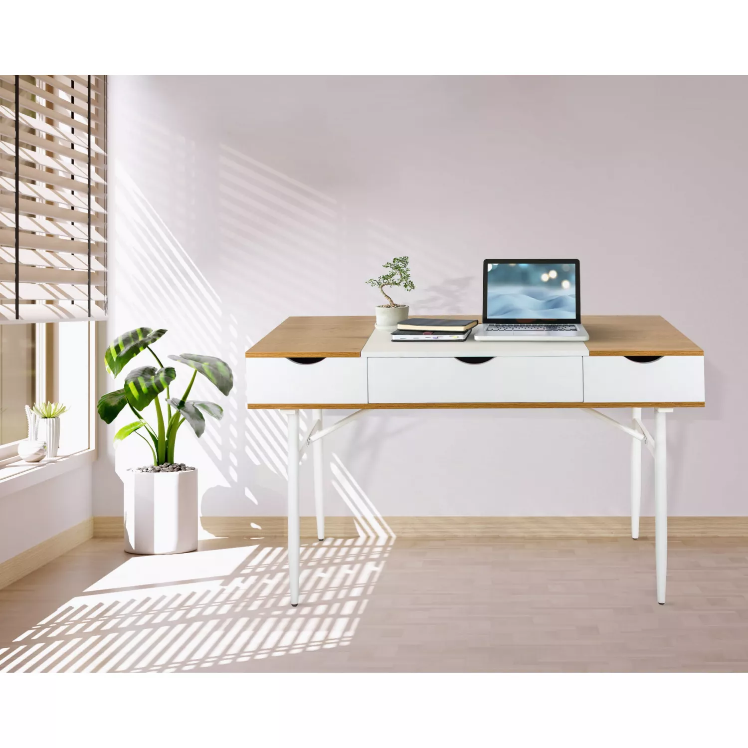MASA DE BIROU CU UN SERTAR, JUMI, 120X60X77CM, STEJAR/ALB |