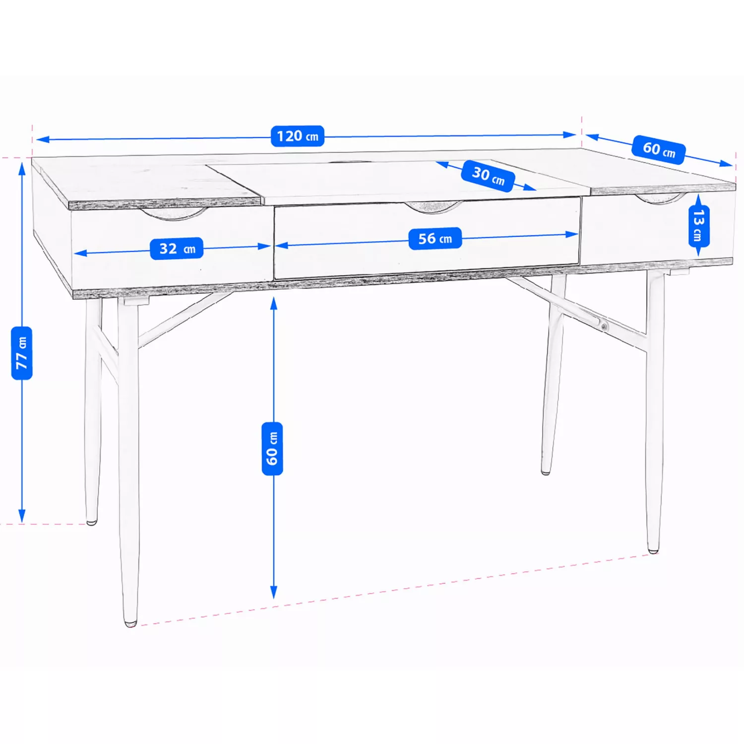 Caracteristici pentru Masa de birou Nex Home MASA DE BIROU CU UN SERTAR, JUMI, 120X60X77CM, STEJAR/ALB