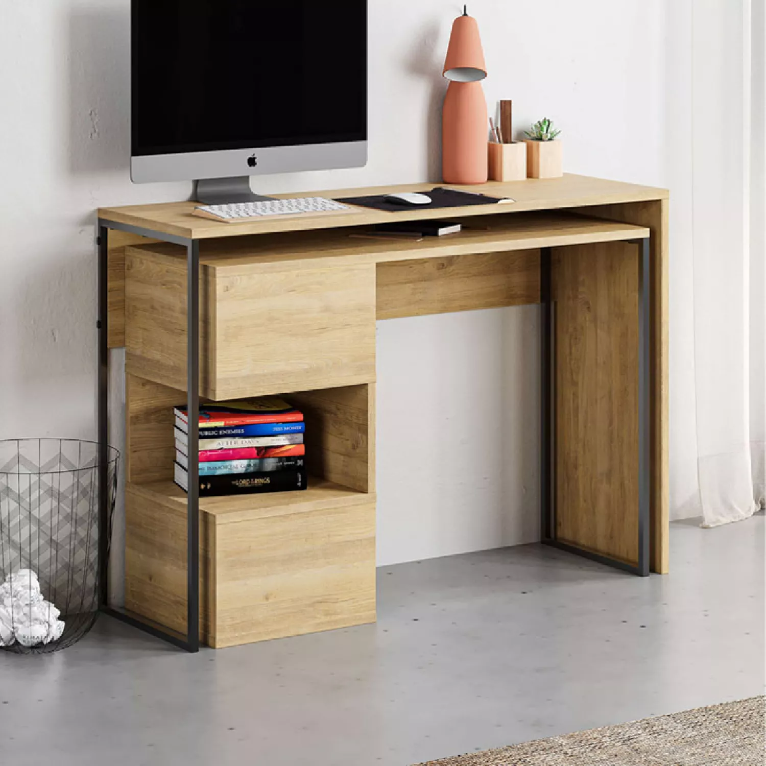 Masa de birou showdeko badau multifunctionala, gri retro, 110x37.2x77