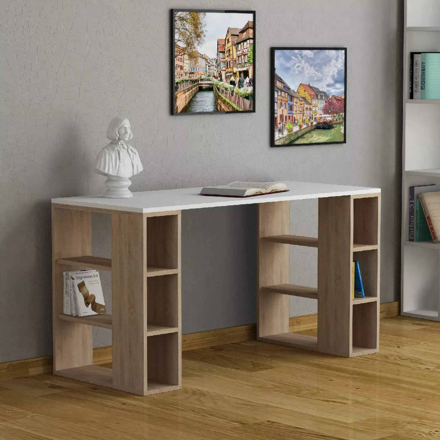 Masa de birou showdeko colmar, alb, stejar, 140x75x60