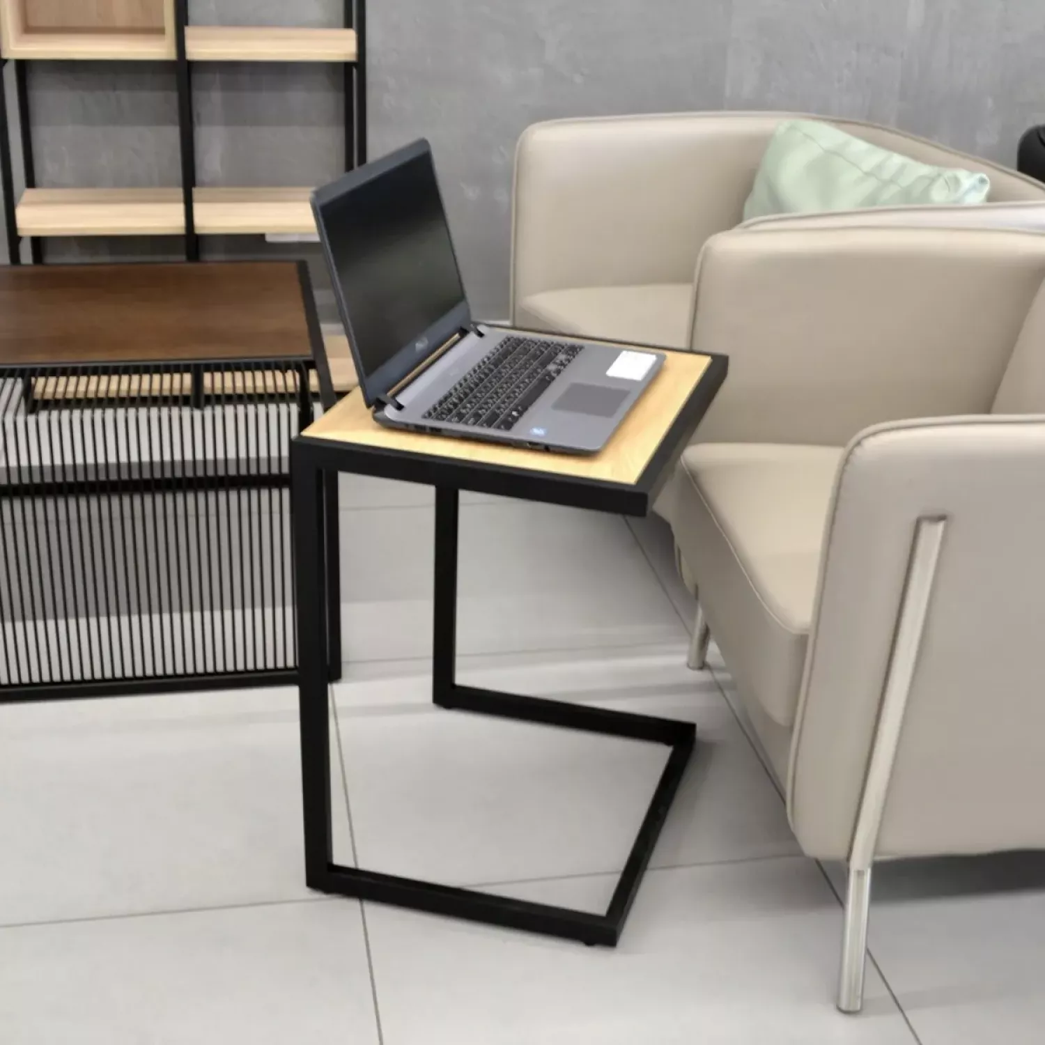 Masa de calculator dp notebook, metal, pal melaminat, stejar laptos, negru, 60 x 50 x 40