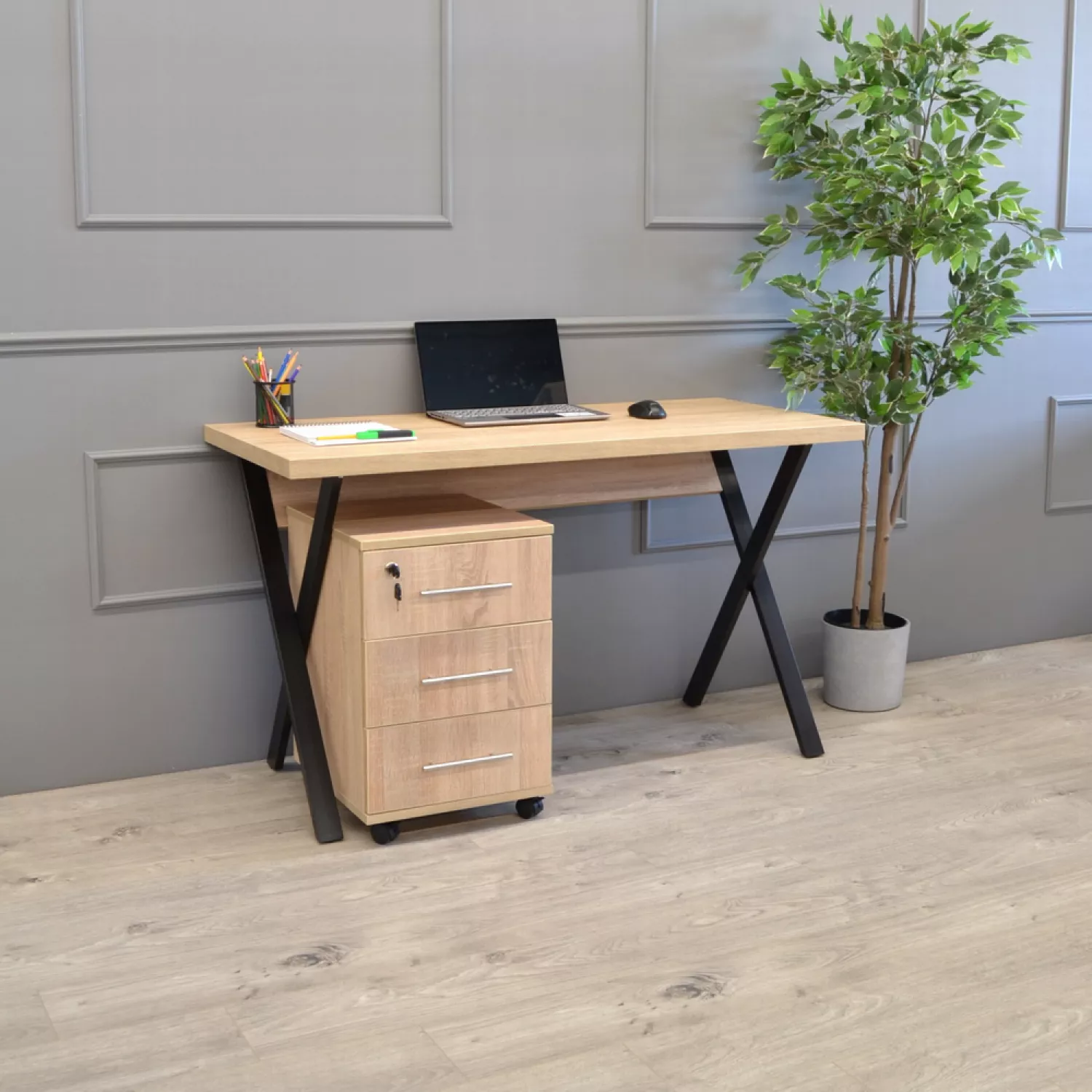 Masa dp birou alexa, pal, metal, sonoma, 130 x 60 x 77