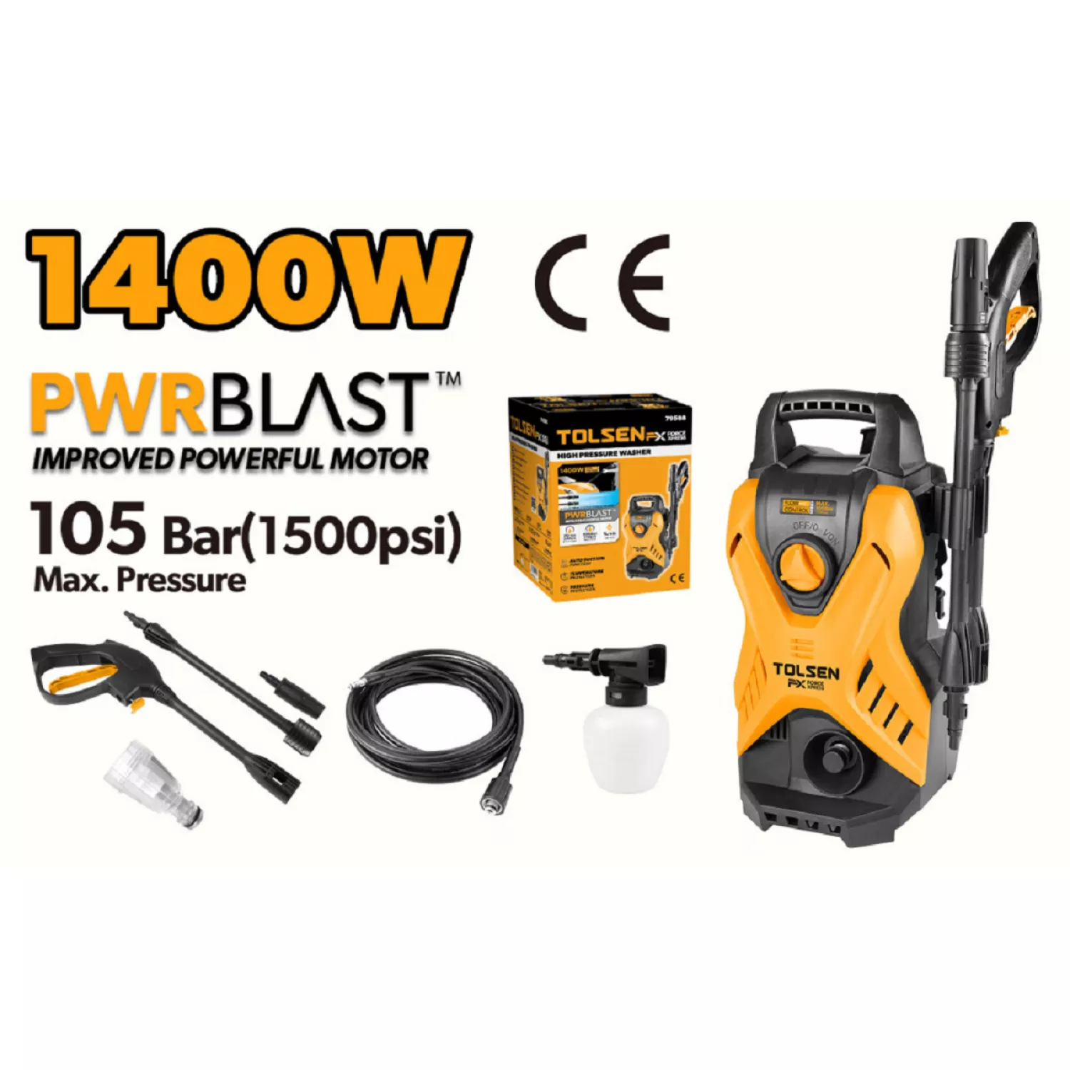 Caracteristici pentru Masina de spalat cu presiune Tolsen 105BAR, 1400 W
