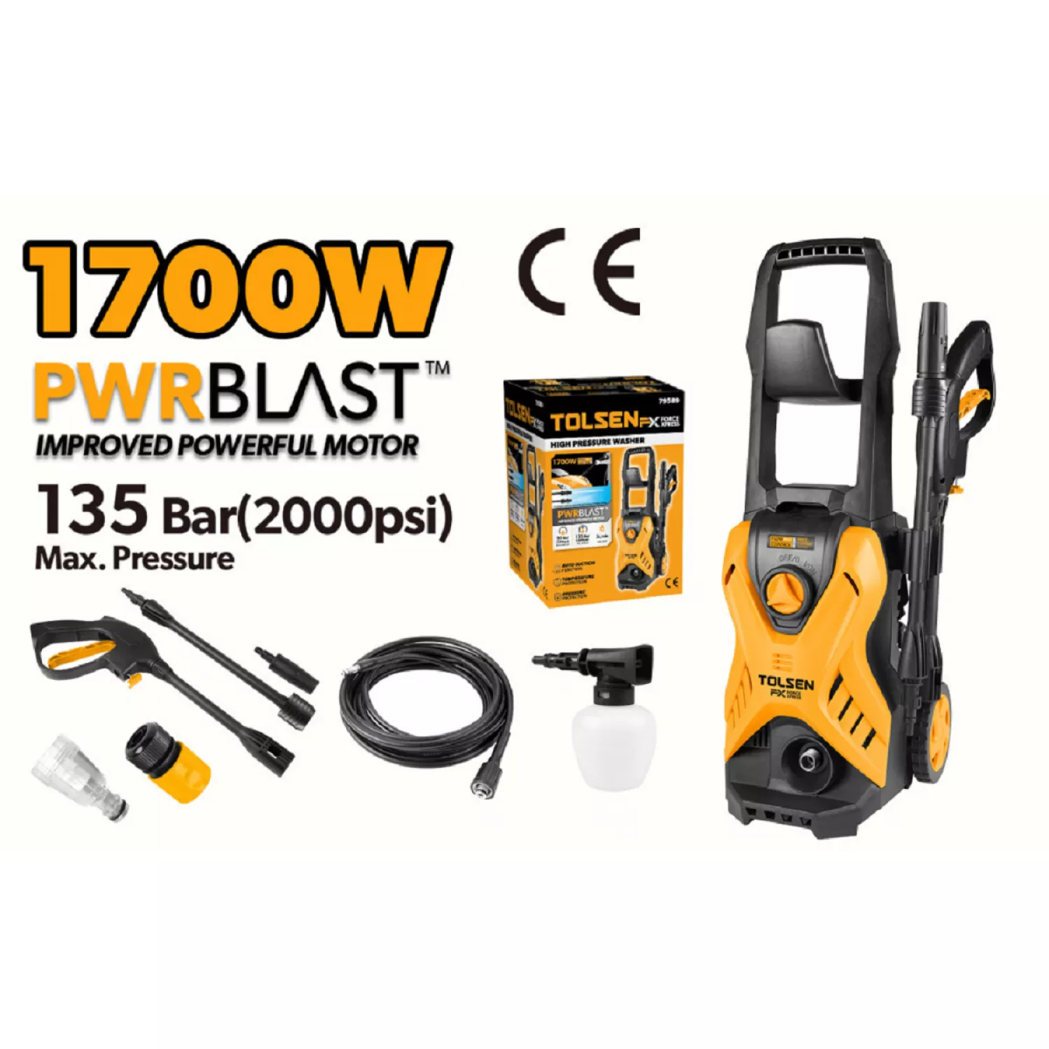 Caracteristici pentru Masina de spalat cu presiune Tolsen 135BAR, 1700 W
