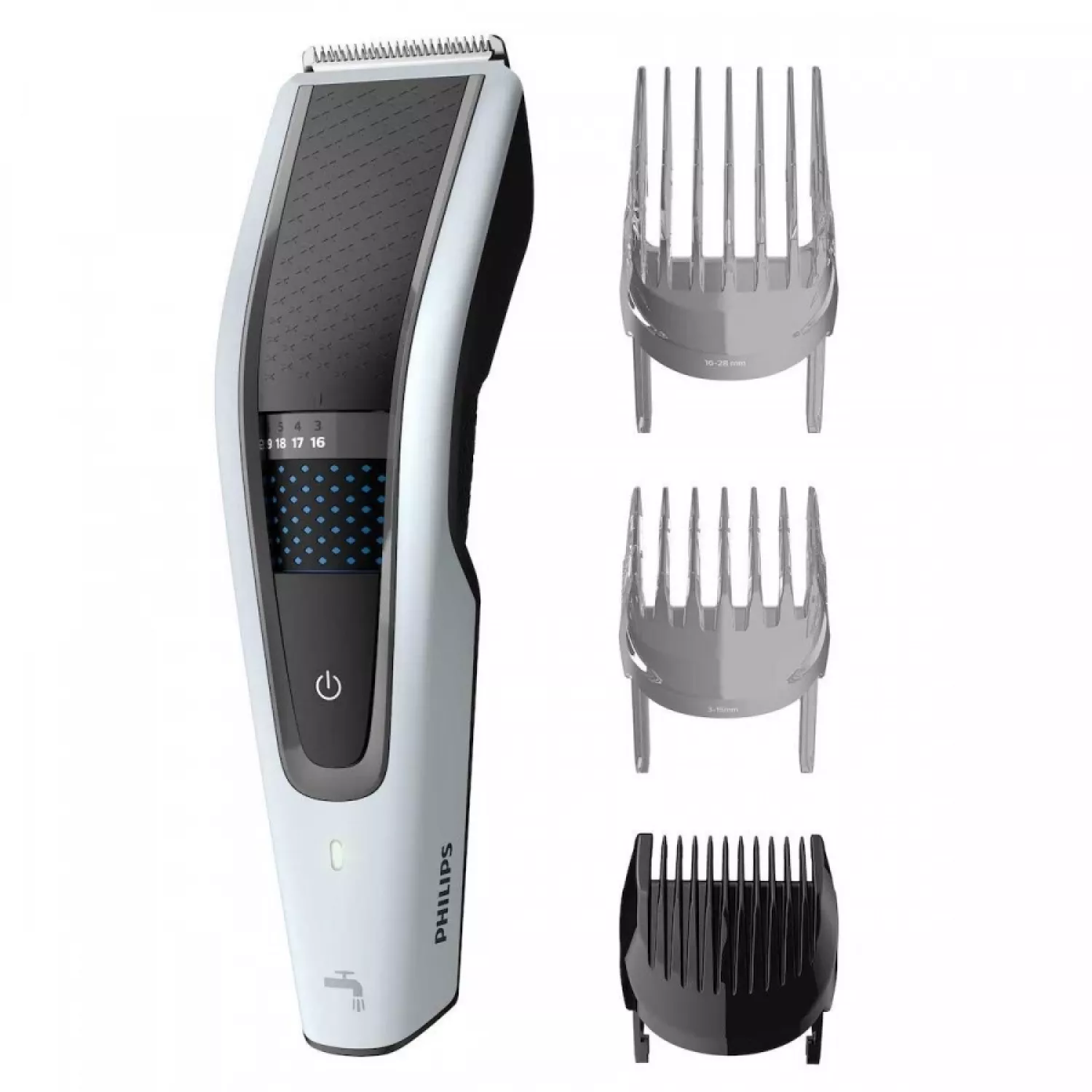 Caracteristici pentru Masina de tuns PHILIPS HC5610/15, 28 trepte de taiere, 3 piepteni, Inox, Alb, Negru