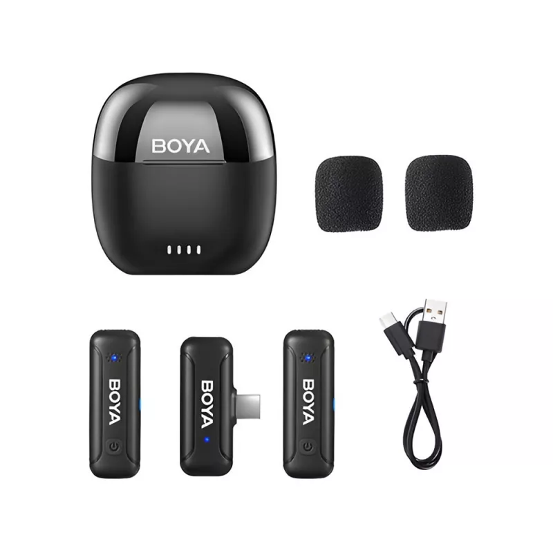 2.4GHZ DUAL-CHANNEL WIRELESS MICROPHONE SYSTEM WITH CHARGING CASE (BY-WM3T-U2), TYPE-C JACK, BLACK BY-WM3T-U2 |