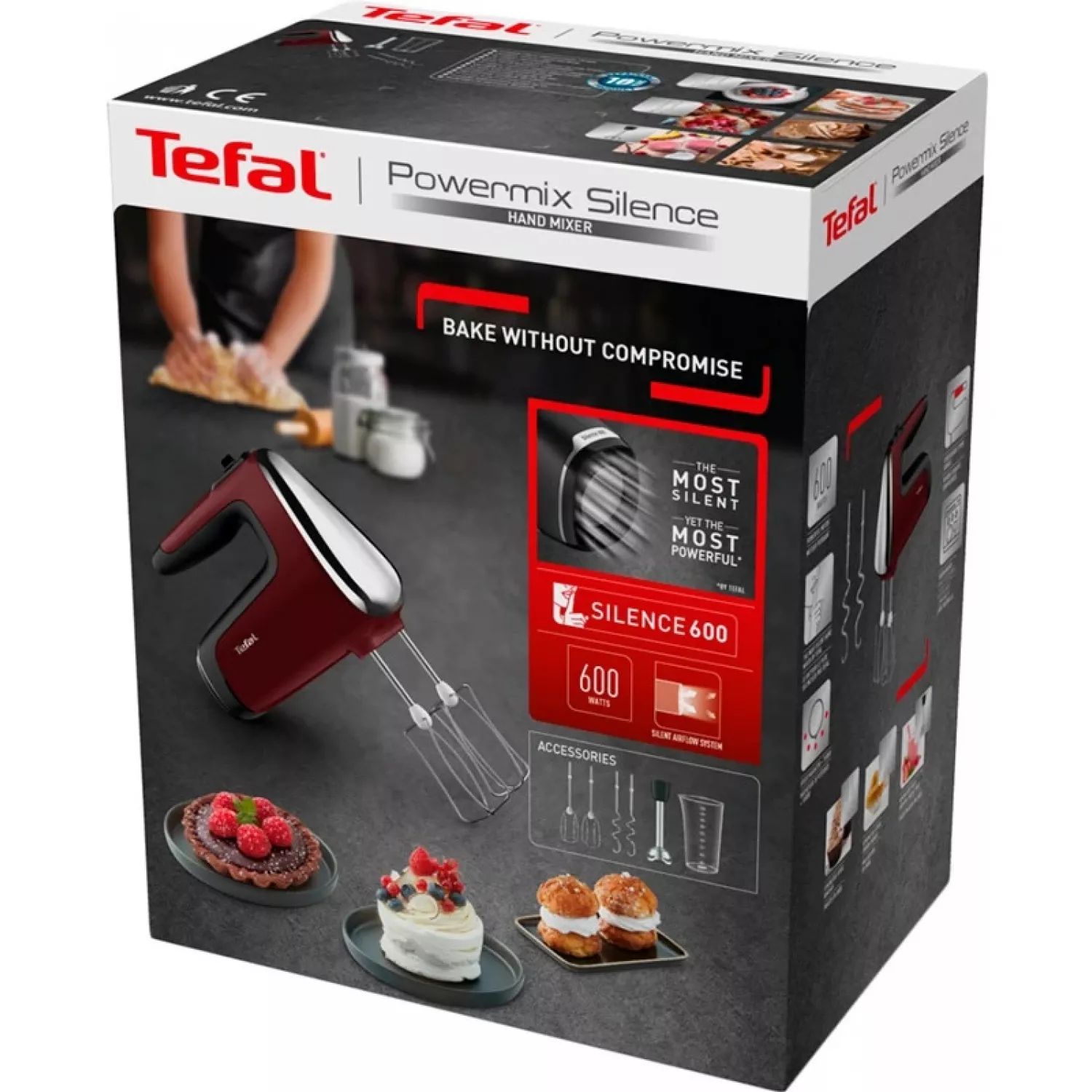 Caracteristici pentru Mixer Tefal HT652538, 600 W, 5 viteze, Functie Turbo, Bordo, Negru