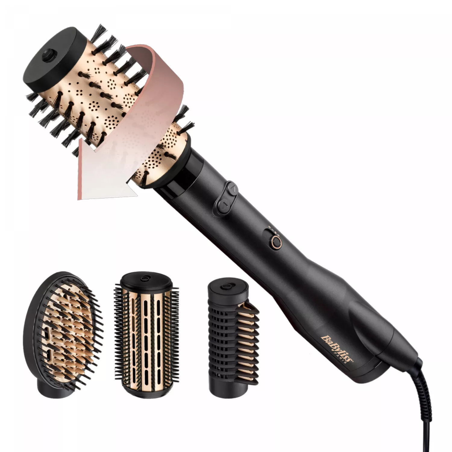 Caracteristici pentru Perie cu aer BABYLISS AS970E, 650 W, 2 trepte de viteza, 4 duze, Negru