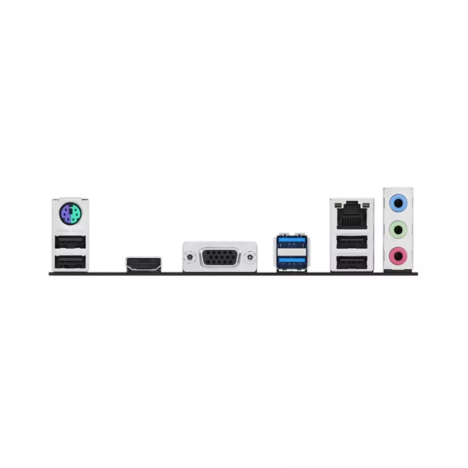 Panoul din spate dispune de două porturi USB 3.2 Gen 1, patru porturi USB 2.0, un port HDMI 2.1 cu suport 4K@60Hz, un port VGA, un port de rețea Ethernet Realtek 1 Gb, trei mufe audio și un port combo PS/2. Conectorii interni includ porturi USB suplimentare și două headere RGB adresabile Gen 2 pentru personalizare.