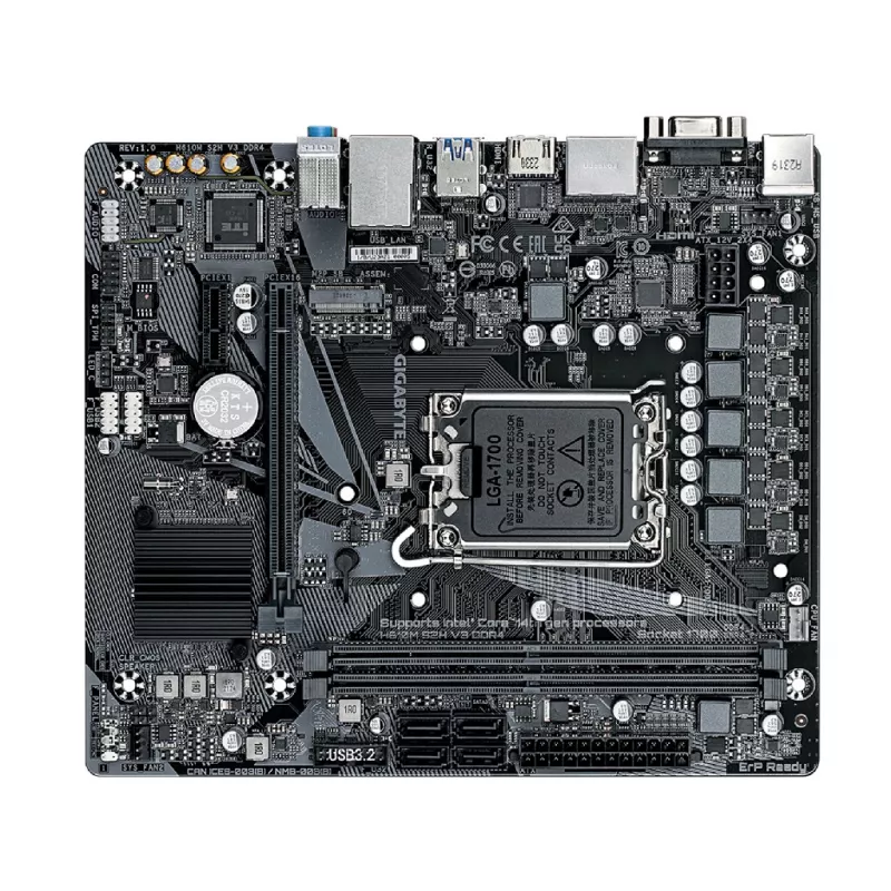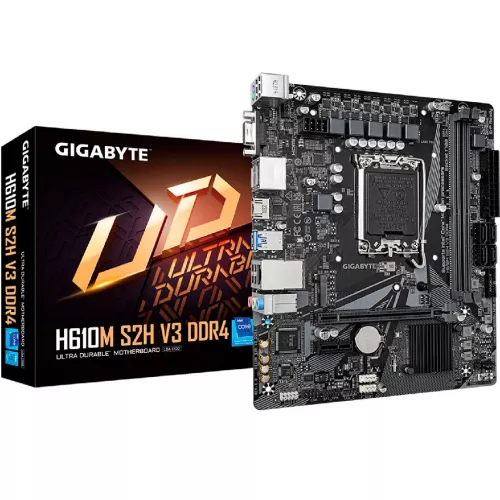 GIGABYTE H610M S2H V3 DDR4, Socket 1700, Intel® H610 (14/13/12th Gen CPU), 8Phases, Dual 2xDDR4-3200, VGA, HDMI, 2xDP, CPU Intel graphics, 1xPCIe X16 4.0, 4xSATA3, 1xM.2, 1xPCIe X1, ALC897 7.1, 1xGbE LAN, 4xUSB3.2, RGB Led, mATX GA_H610M S2H V3 DDR4 |