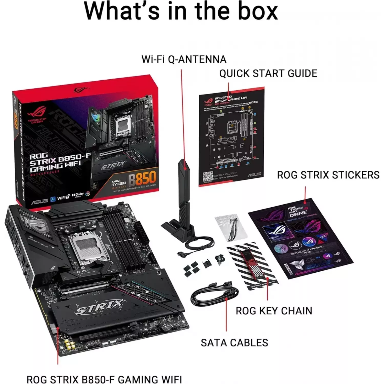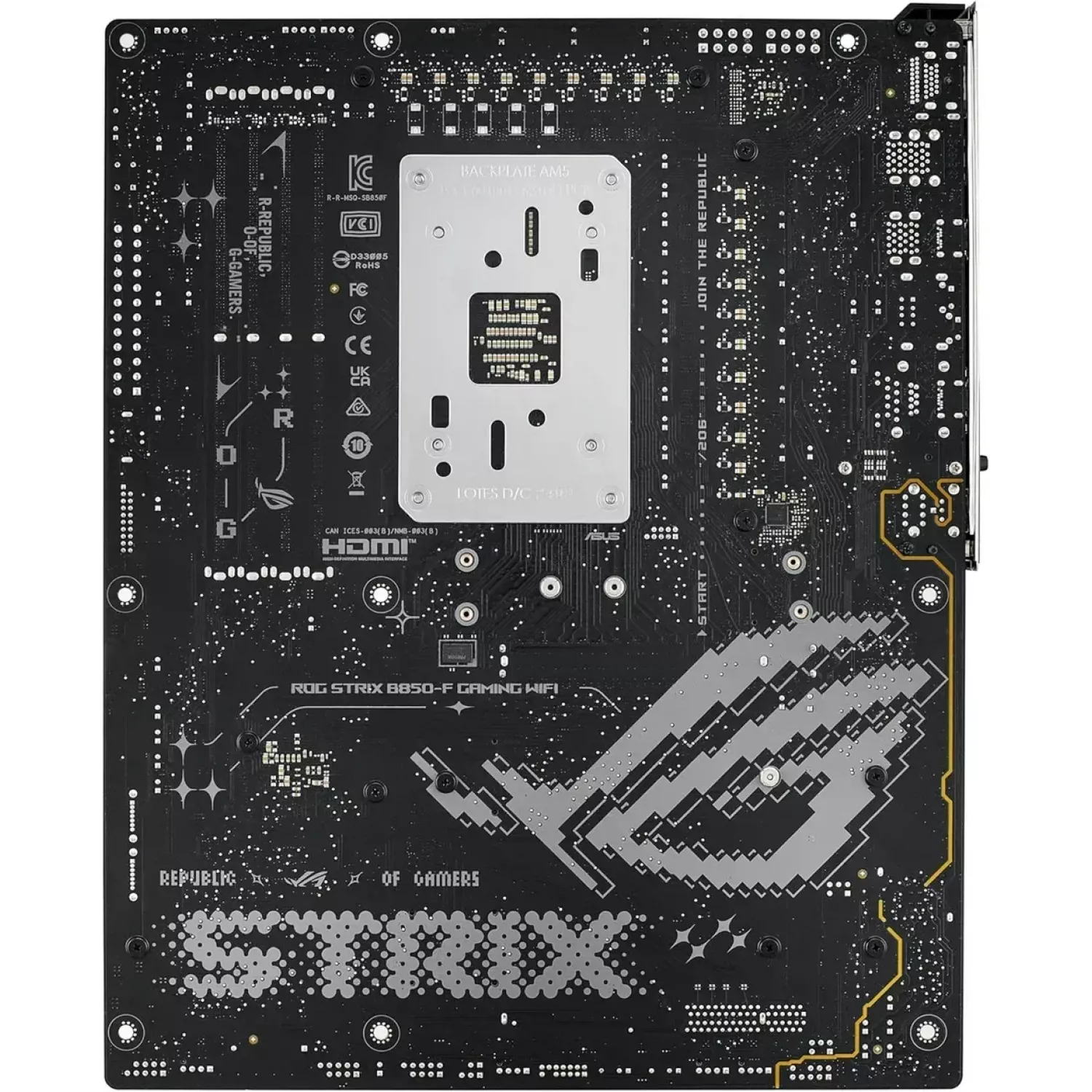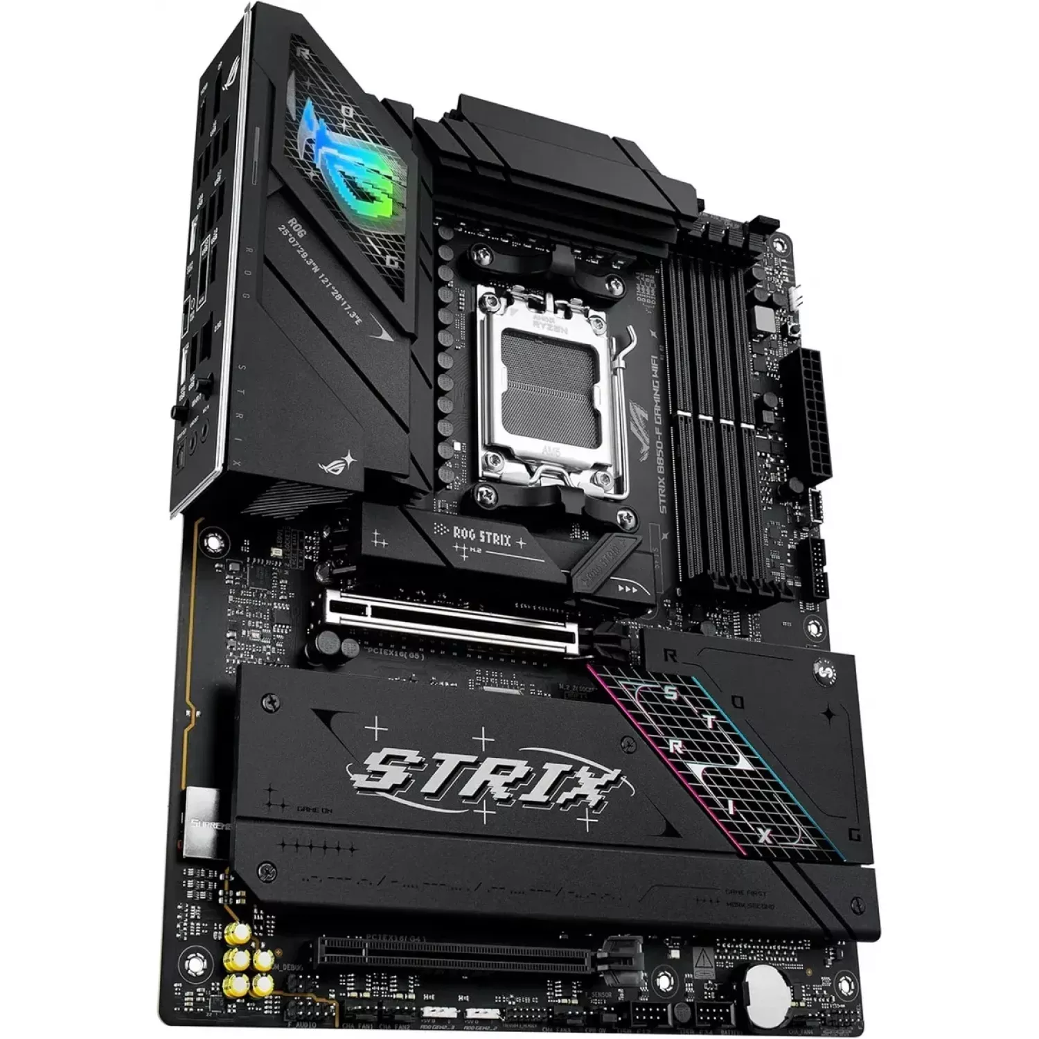 ASUS ROG STRIX B850-F GAMING WIFI AMD B850, AM5, Dual DDR5 8000+MHz, 2xPCIe 5.0 x16 slot, HDMI/DisplayPort, USB Type-C, SATA&PCIe RAID, 2xM.2 PCIe 5.0 x4, M.2 PCIe 4.0 x4, Wi-Fi 7 802.11be&BT 5,4, 2.5Gb Ethernet, Aura (placa de baza/материнская плата