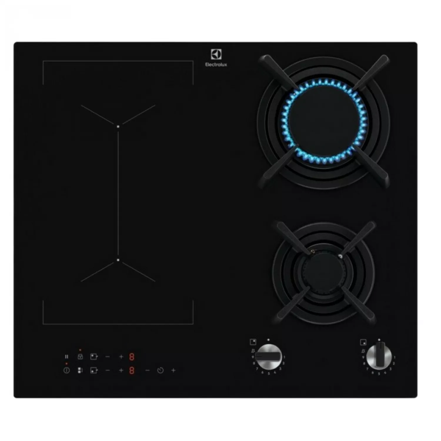 Plita Electrolux KDI641723K este un model încorporabil mixt, combinând două arzătoare pe gaz şi două zone de inducţie. Este proiectată pentru cei care doresc flexibilitatea de a găti atât pe foc deschis (gaz), cât şi cu inducţie, într‑o plită elegantă, modernă, cu funcţii utile şi elemente de siguranţă.