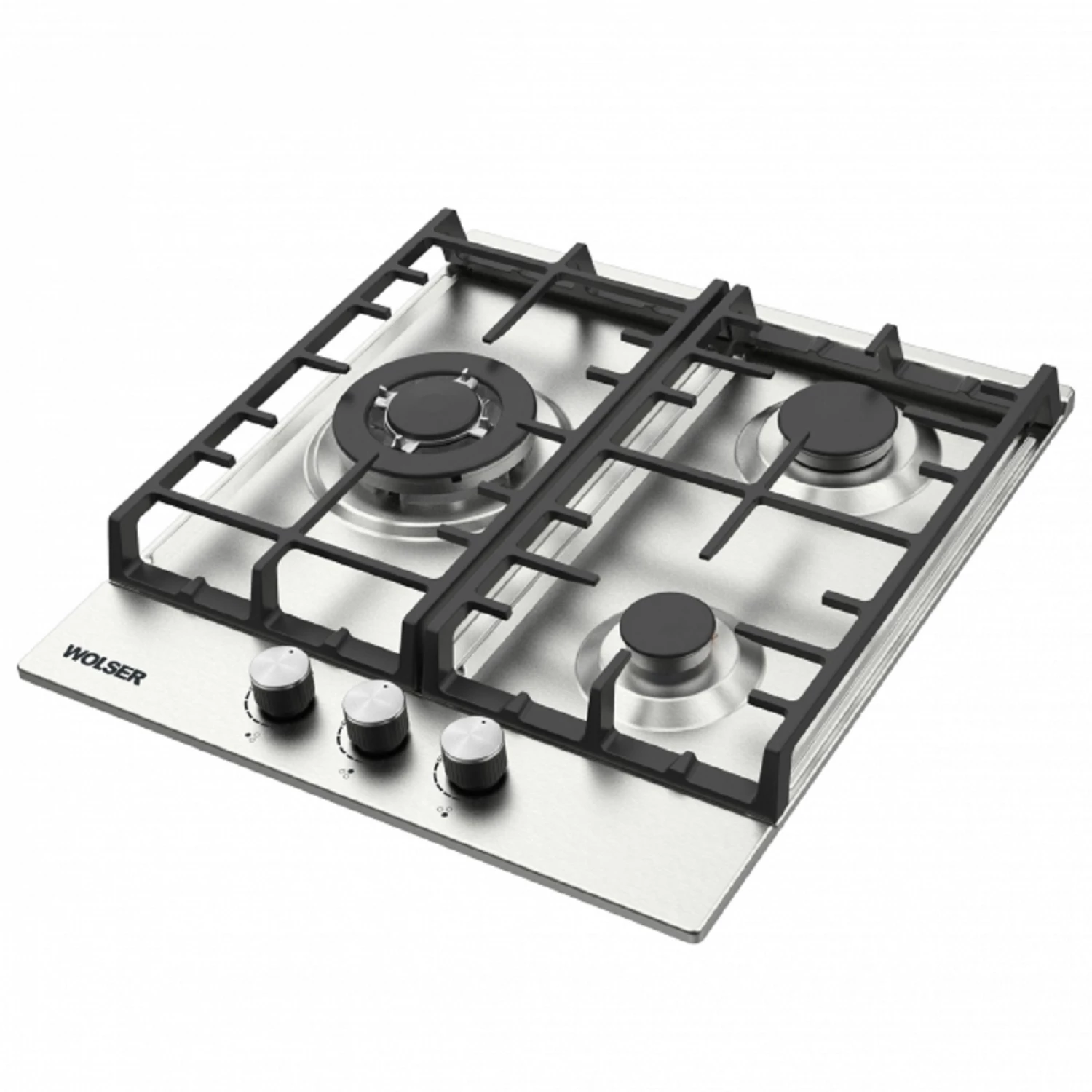Plita incorporabila cu gaz wolser wl-brd 6300 inox ffd, 3 arzatoare, arzator wok, inox