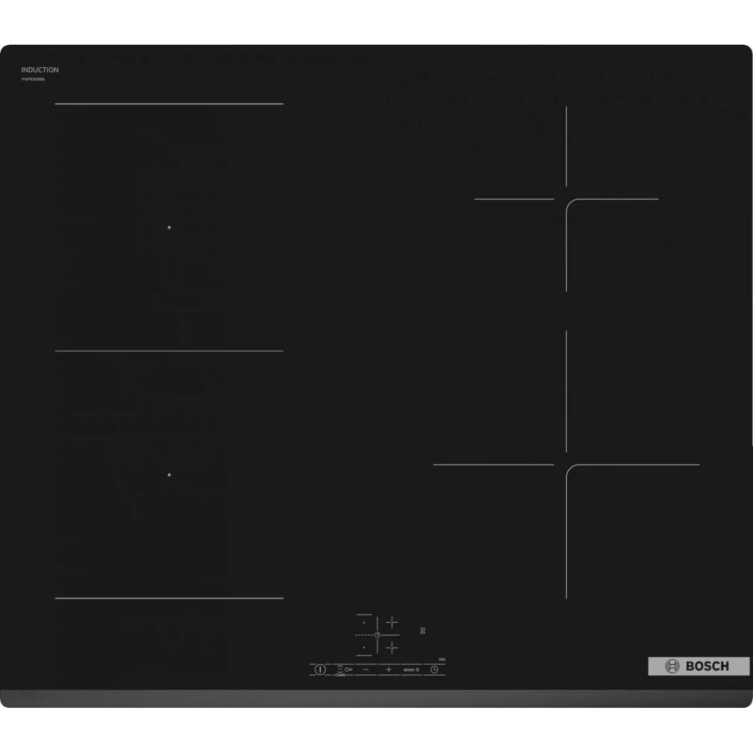 Caracteristici pentru Plita incorporabila cu inductie BOSCH PWP63KBB6E, 4 arzatoare, Vitroceramica, Control sensor, Negru