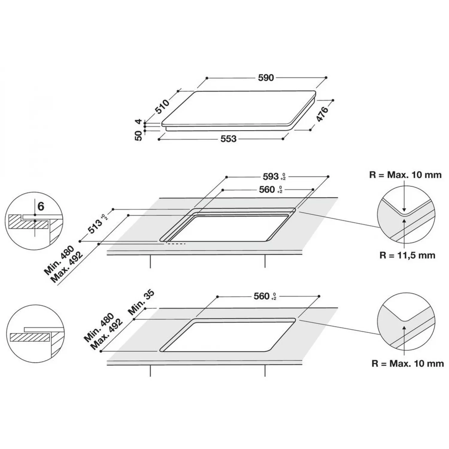 Caracteristici pentru Plita incorporabila cu inductie Whirlpool WB S0060 NE, 7200 W, 4 arzatoare, Vitroceramica, Сontrol sensor, Timer, Negru