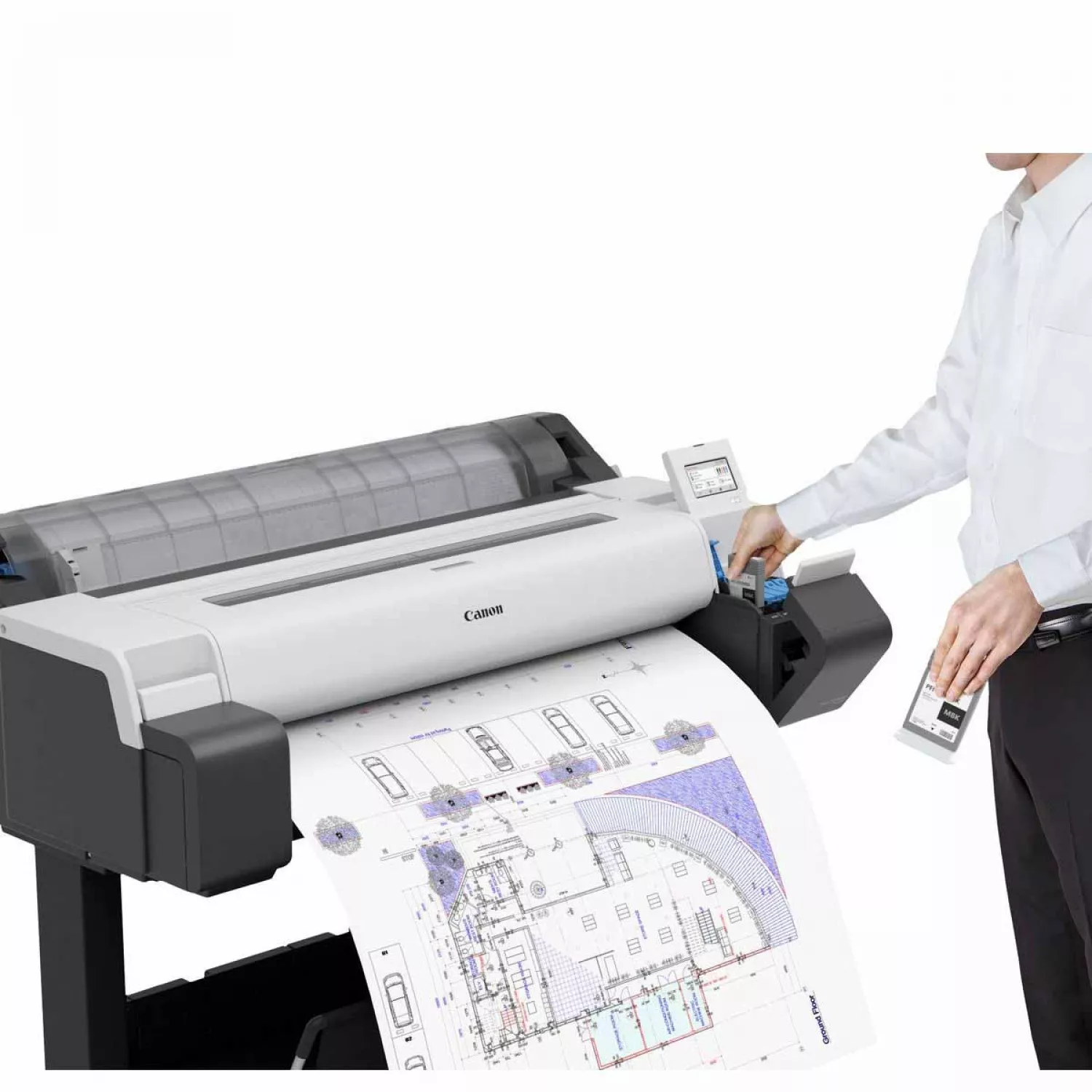 Caracteristici pentru Plotter CANON PLOTTER IMAGEPROGRAF TM-340, Printer Type: 5 Colours, 36", 4.3” operational panelPrint Technology: Canon Bubblejet on Demand 6 colours integrated type (6 chips per print head x 1 print head)Print Resolution: 2,400 x 1,200 dpiNumber of Nozzles