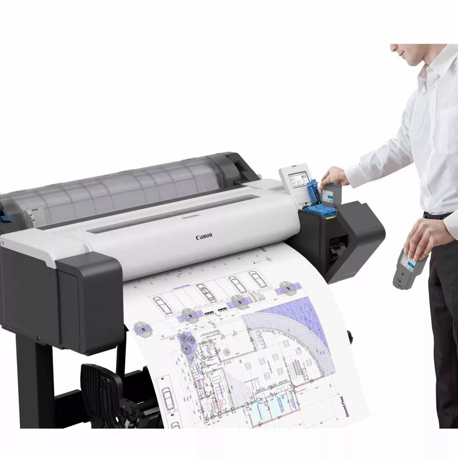 Plotter canon plotter imageprograf tm-350, printer type: 5 colours, 36", 4.3” operational panelprint technology: canon bubblejet on demand 6 colours integrated type (6 chips per print head x 1 print head)print resolution: 2,400 x 1,200 dpinumber of nozzles