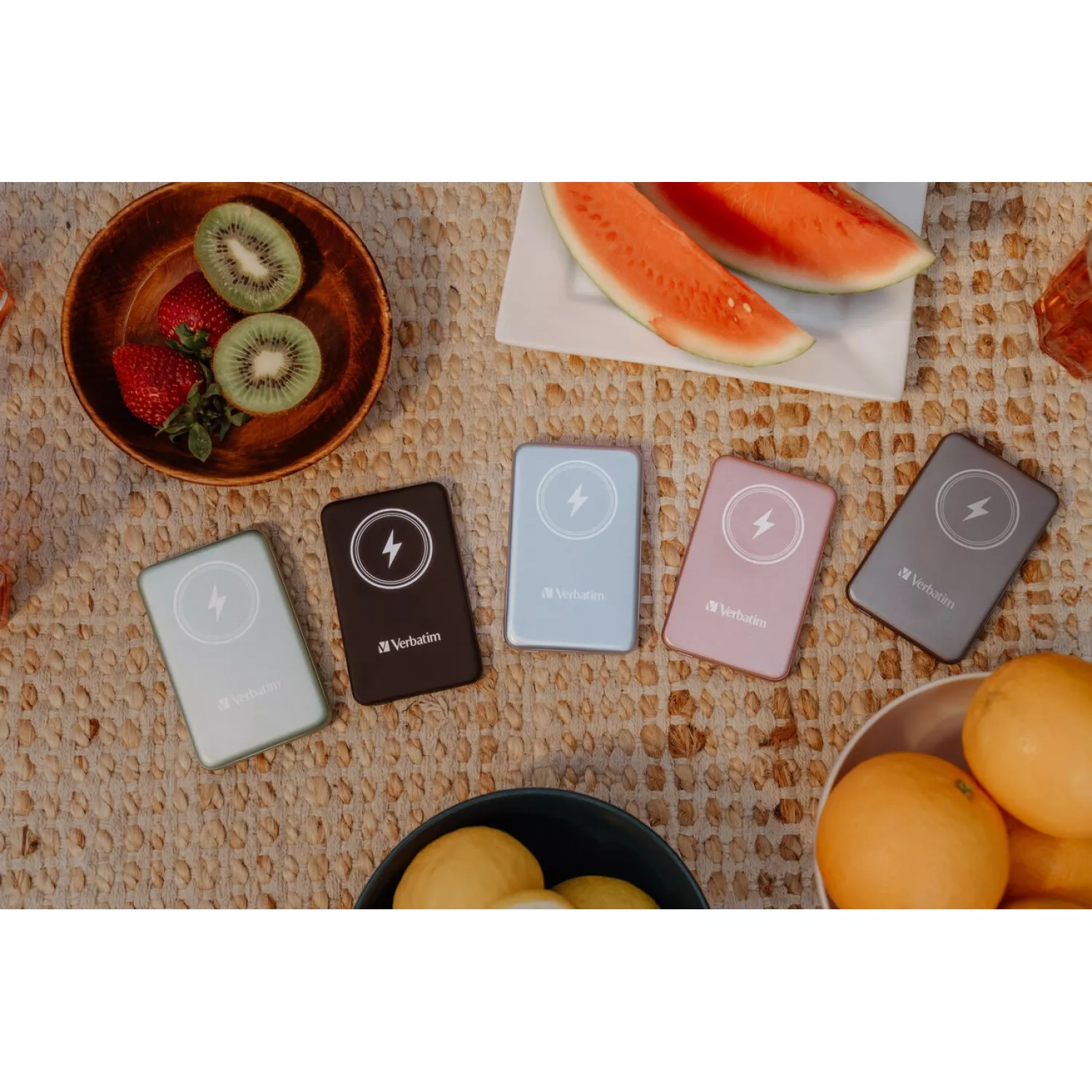 Power bank verbatim 5000mah power bank - verbatim charge'n'go magnetic wireless power bank, super-slim body thickness – only 9.6mm, dual charging modes: 15w magnetic wireless and 20w usb-c pd, 124g, blue