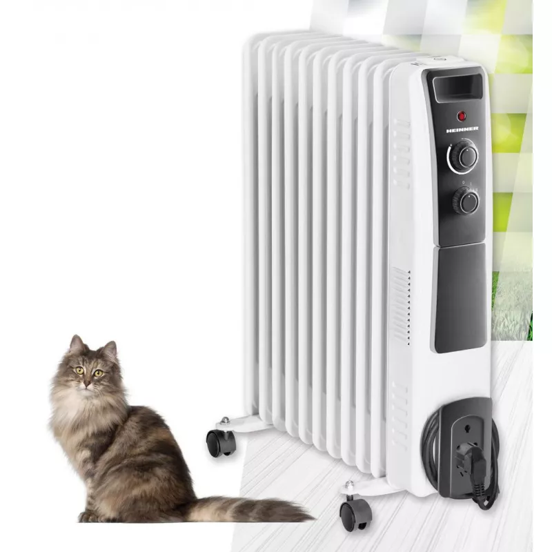 Radiator cu ulei Heinner HOH-Y11WB, 2500 W, 3 trepte de putere, Pe podea, Termostat, Alb