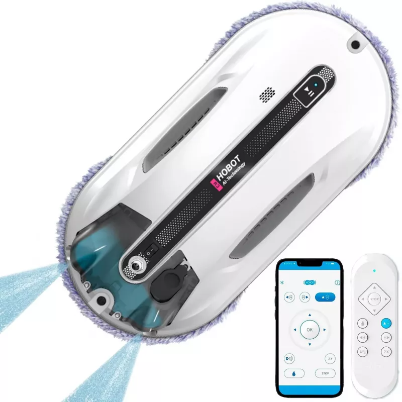 HOBOT Window Cleaning Robot R3, Dual Ultrasonic Spray, Bio-mimicry Technology, AI Smart Route Plan for Through Cleaning, UPS anti-drop up to 20min, Long Power Cord (4m), Ultra-thin design, Remote control + Control via APP, Safety rope