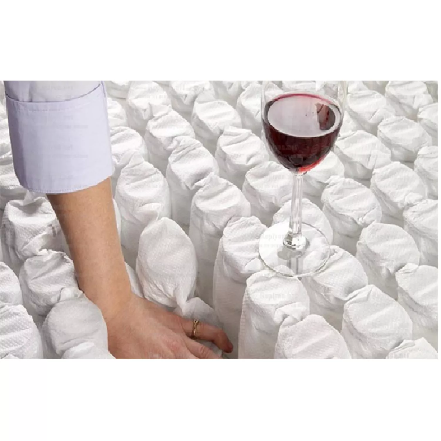 Входящие в структуру матраса пружины типа Bonnel, взаимосвязанны спиралями из углеродной стальной проволоки 1,4 мм. Между рядами пружин расположены 3 пластины, выполненные из полиуретана с плотностью в 28 кг / м³ и толщиной в 5 см. Стальная проволока изготовляется способом эластичной деформации для обеспечения отличной эластичной выдержки во времени. Пружины (280 шт / м²) покрыты слоем жесткого войлока 3,5 мм, на который применяется полиуретановый слой толщиной в 3 см и плотностью в 24 кг / м³. Периметральная жесткость ортопедического матраса Де люкс обеспечена полиуретаном” sistem box”. Армированные края матраса сделаны из полиуретановых пластин (полу-латекс) с толщиной в 6 см и плотностью в 35 кг / м. Материалом для покрытия является шелк Джакард, смесь стеганного хлопка со слоем силикона размещенным на пористой губке, который позволяет циркуляцию воздуха, тем самым предотвращая образование пота и неприятного запаха. Кроме того, весь состав матраса обработан против плесени и клещей. Боковые стенки оснащены 4 кнопками вентиляции для эффективной гигиены вашего матраса.