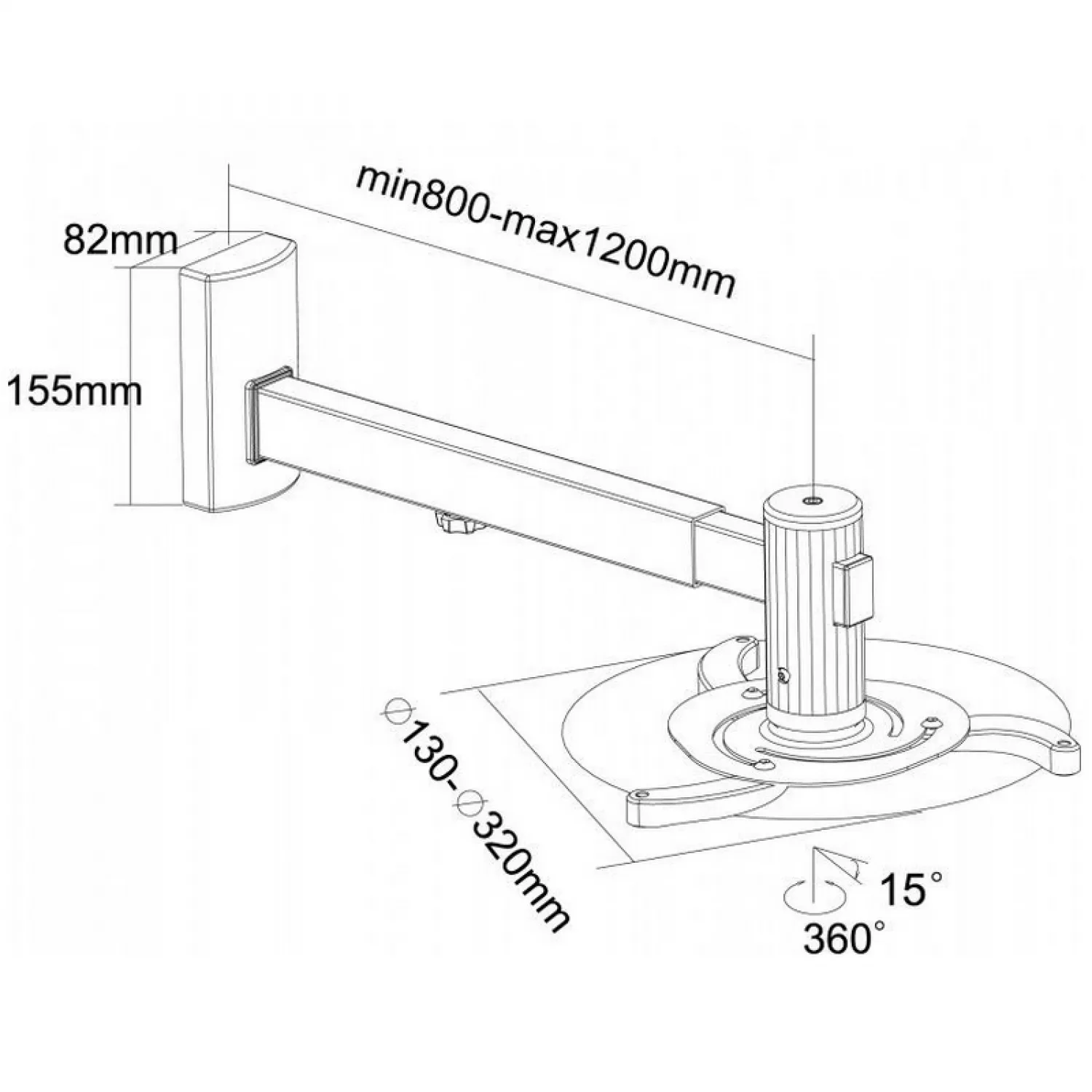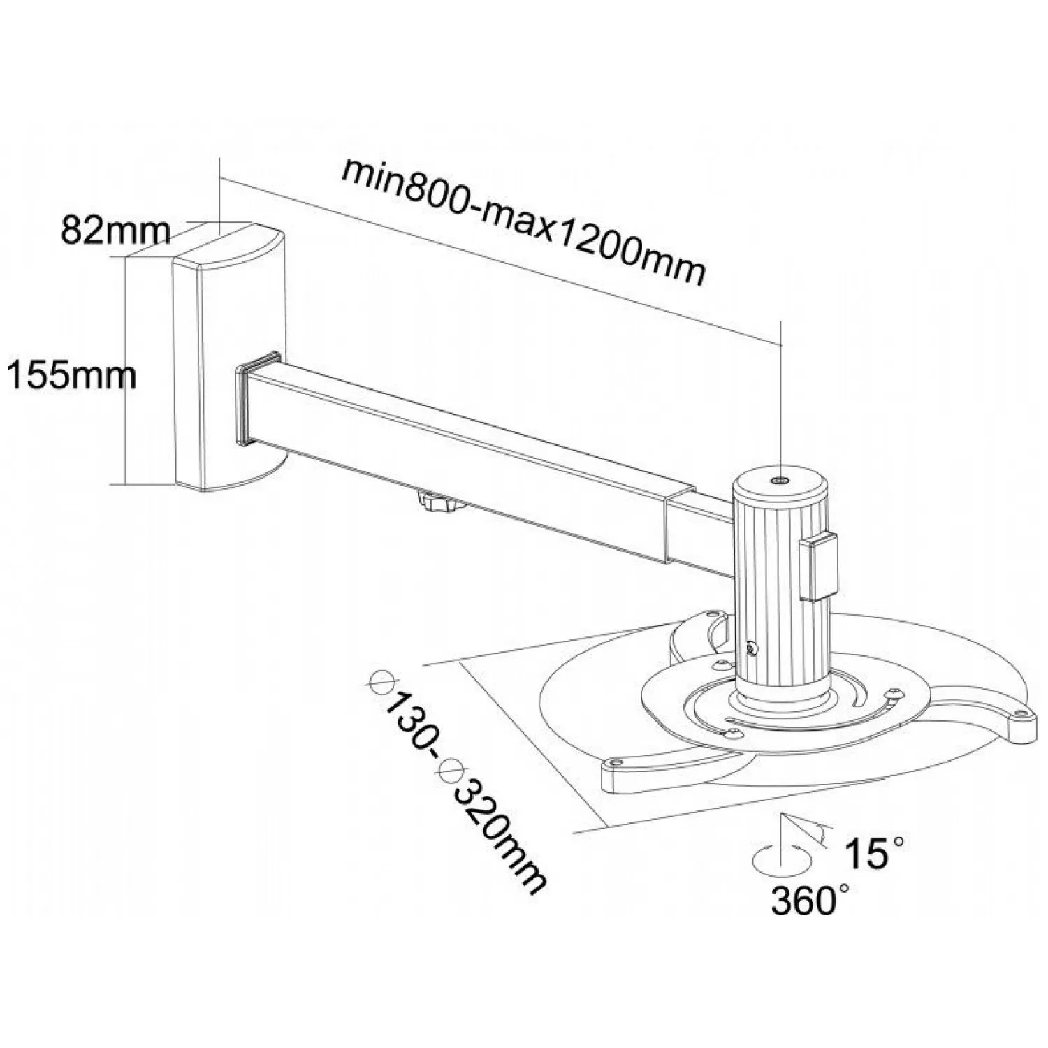 Характеристики для Крепление для проектора SOPAR VESTA 120RA, Short-Throw (max.1200mm), Tilt/Rotate ±15°, Max.Load 10kg