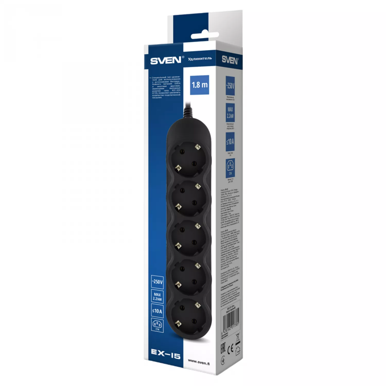 Характеристики для Сетевой фильтр SVEN EX-I5 Black, 1.8m, 5 Sockets, for UPS