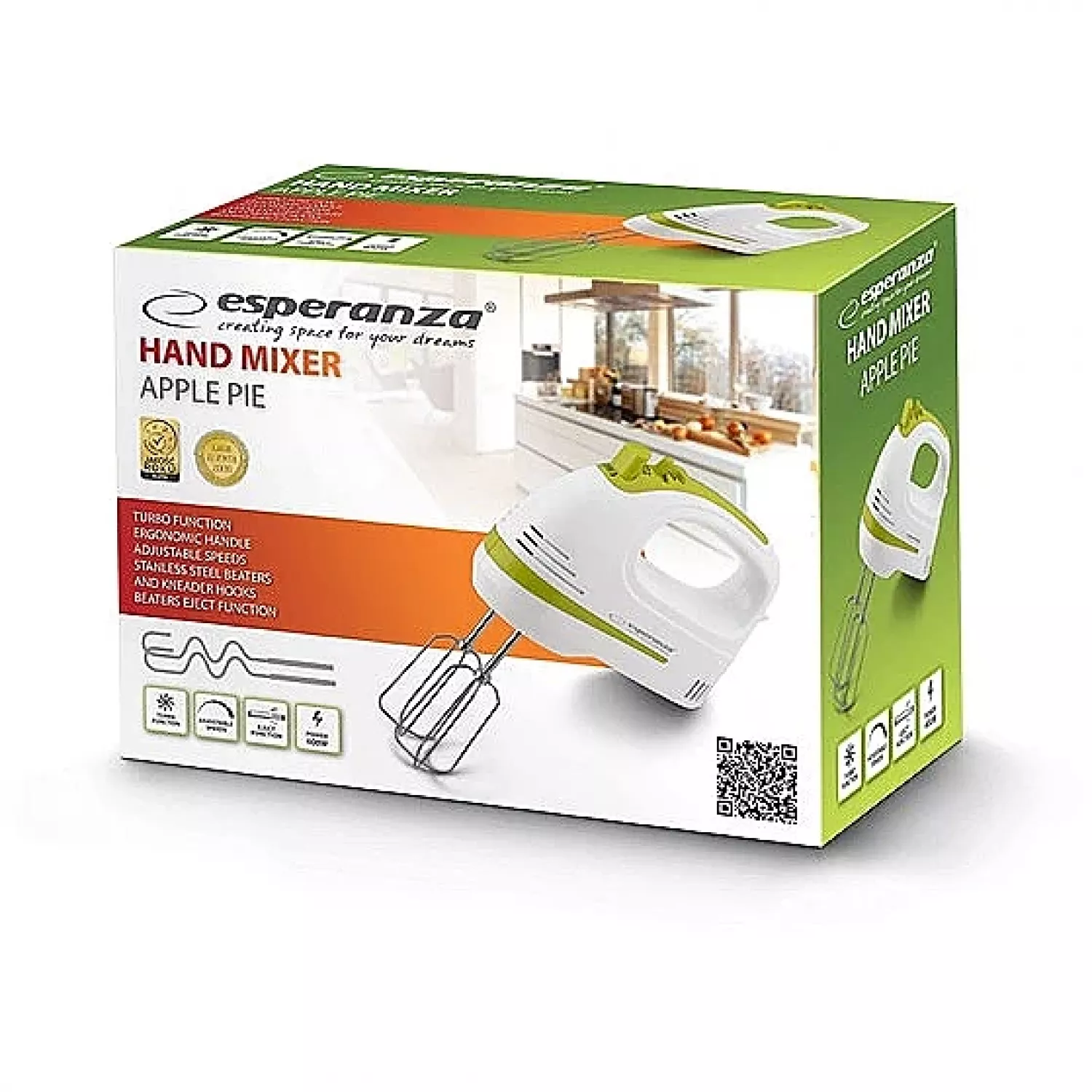 Характеристики для Миксер ESPERANZA APPLE PIE EKM011, Ручной, 400 Вт, 5 скоростей, Турборежим, Белый