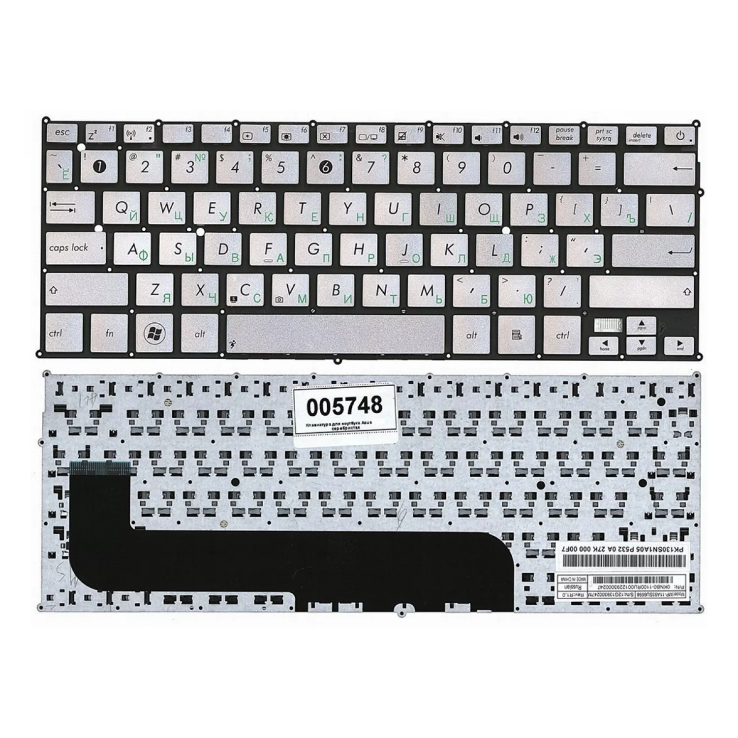 Клавиатура для ноутбука asus zenbook ux21 w/o frame enter-small eng/ru silver