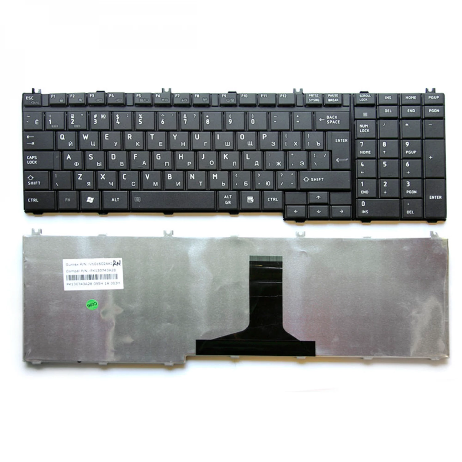 Характеристики для Клавиатура для ноутбука TOSHIBA Satellite L500 L505 L550 L555 A500 A505 P500 P505 Qosmio X500, ENG/RU Black