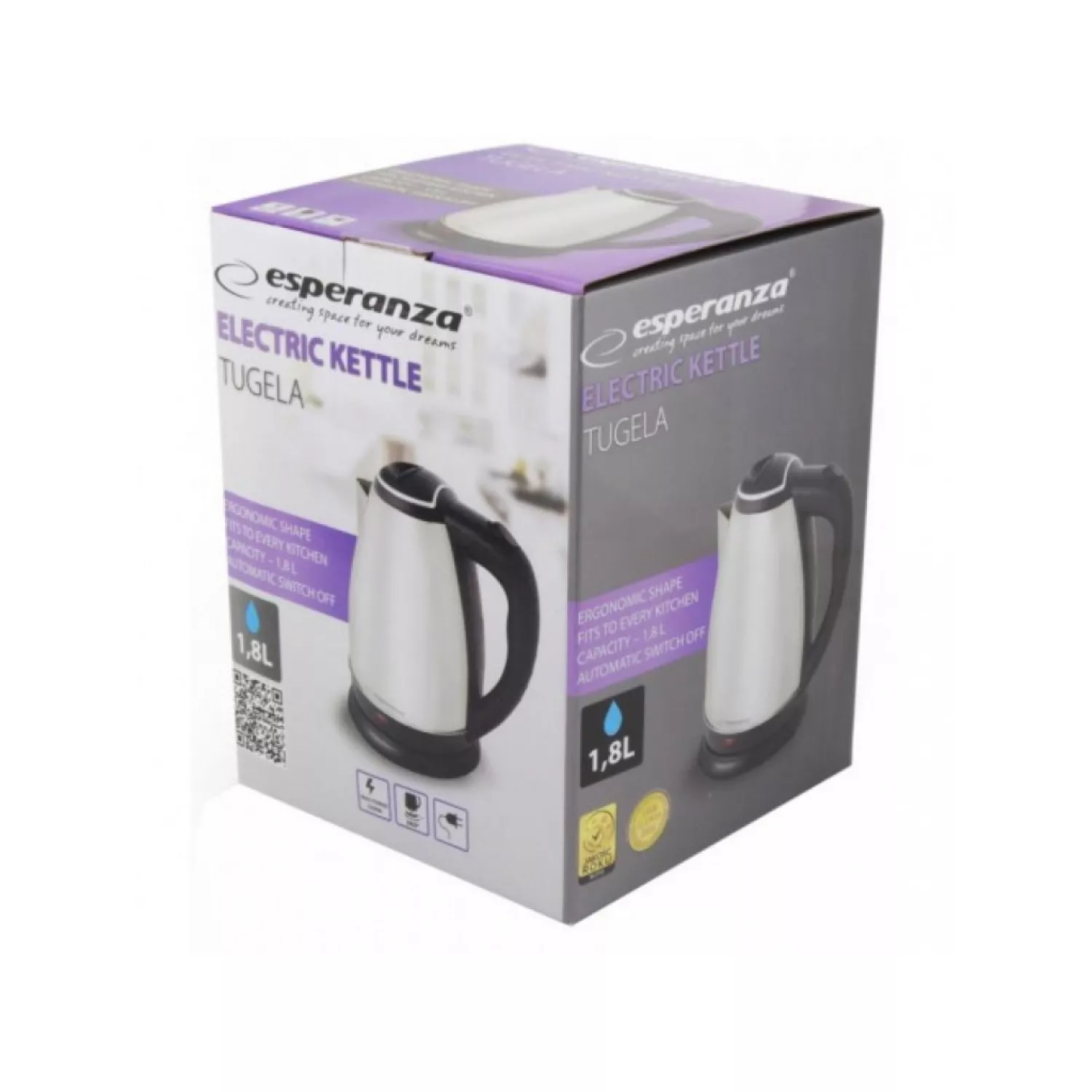 Характеристики для Электрочайник ESPERANZA RORAIMA TKK001S, 1.8 л, 1800 Вт, Нержавеющая сталь, Нержавеющая сталь