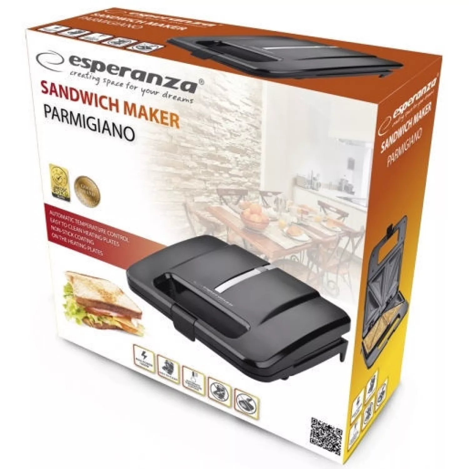 Характеристики для Тостер ESPERANZA PARMIGIANO EKT010, 1000 Вт, Гриль, Индикатор работы, Механическое, Чёрный
