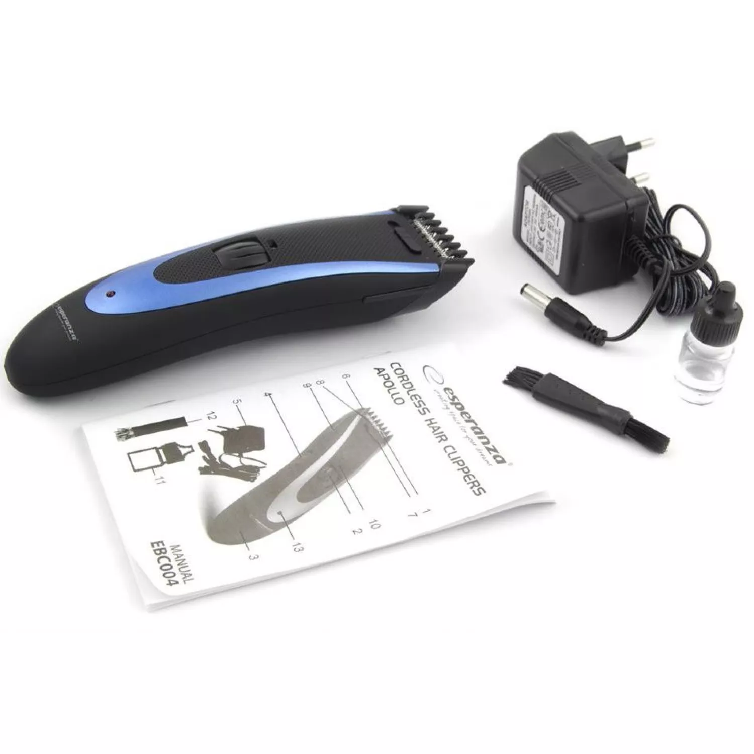 Машинка для стрижки esperanza apollo ebc004 black-blue, сеть, аккумулятор, 1 насадка, нержавеющая сталь