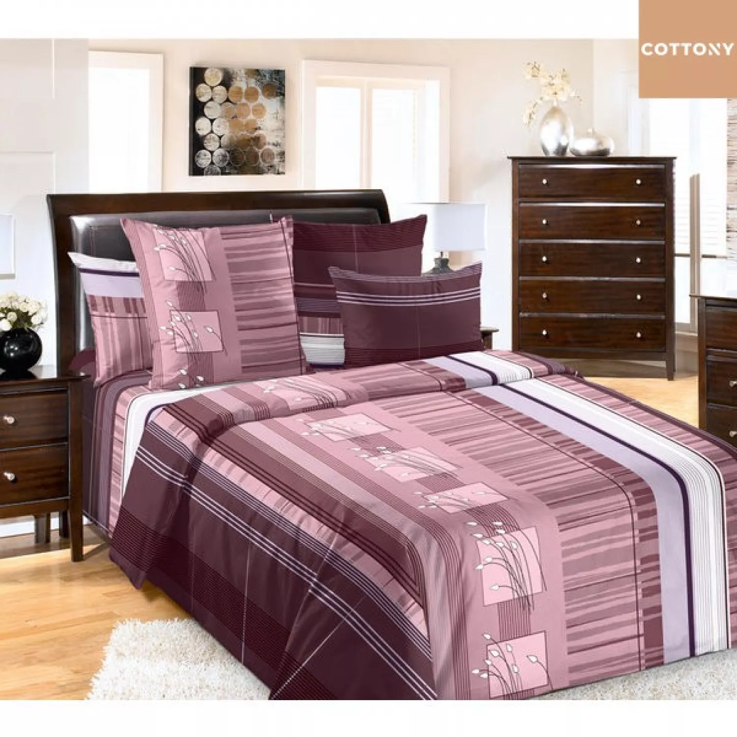 Характеристики для Постельное белье (комплект) Cottony Sandra, Двуспальный Евро, Перкаль, Бордовый, 215 x 200, 50 x 70
