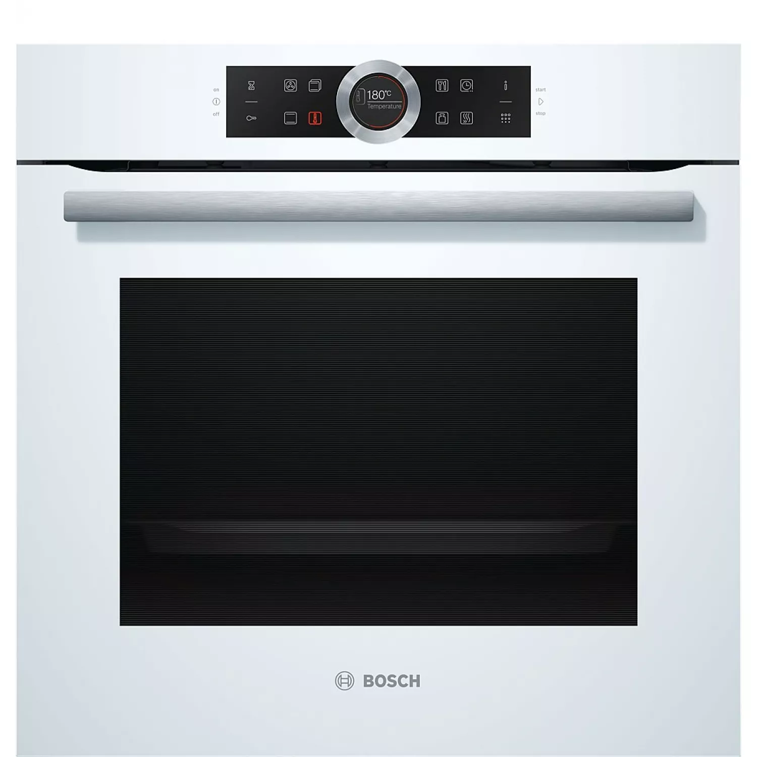 Встраиваемая электрическая духовка bosch hbg675bw1, 71 л, электрический гриль, таймер электронный, пиролитическая очистка, белый, черный, a