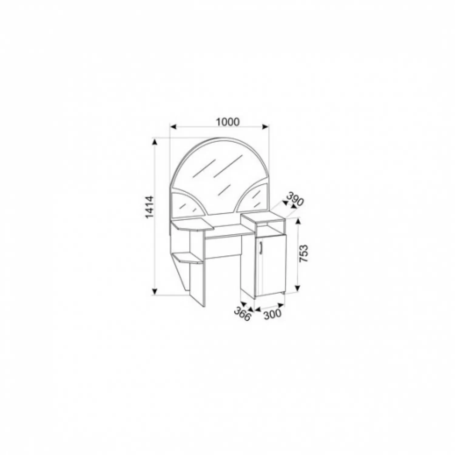 Характеристики для Туалетный столик Ambianta INTER, ЛДСП, С зеркалом, 5 полок, Белый Самоа, 141.4 x 100 x 39