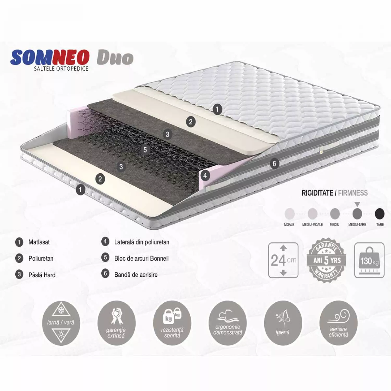 Характеристики для Матрас Somneo DUO, 180x190x24