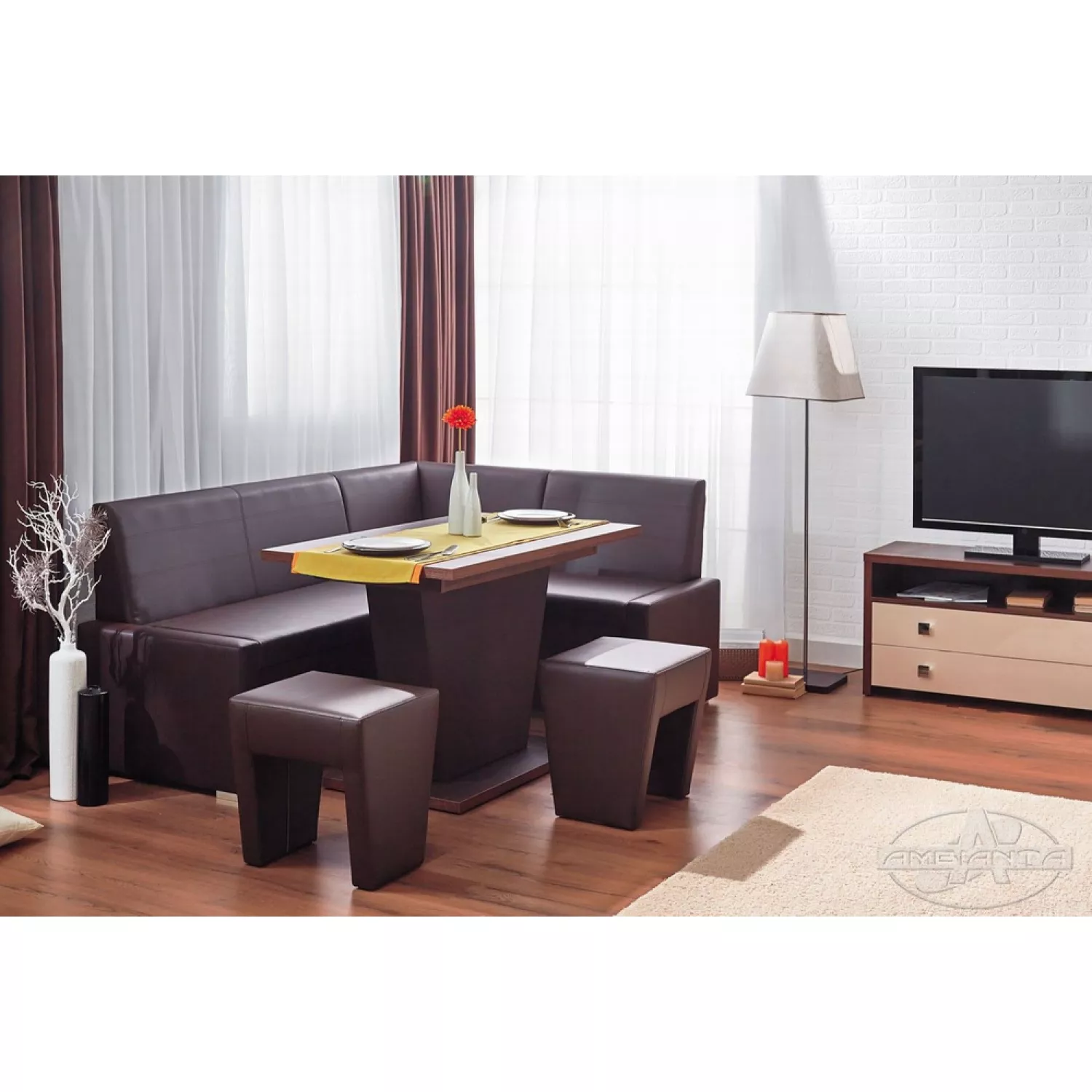 Кухонный уголок ambianta studio расширяемый сонома new, лдсп, экокожа, сонома