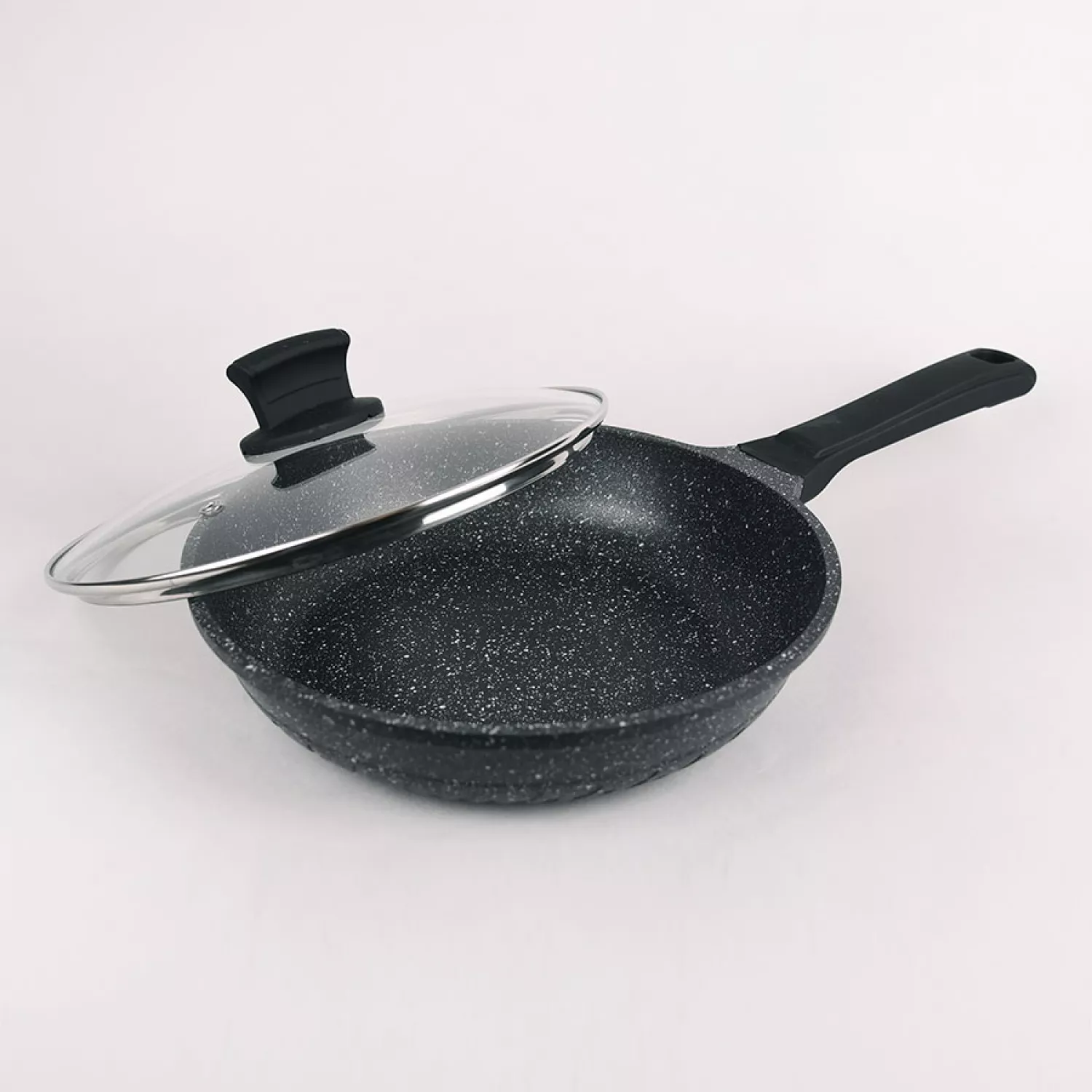 Сковорода с крышкой maestro mr-1225-28, 28 см, алюминий, каменное антипригарное, черный