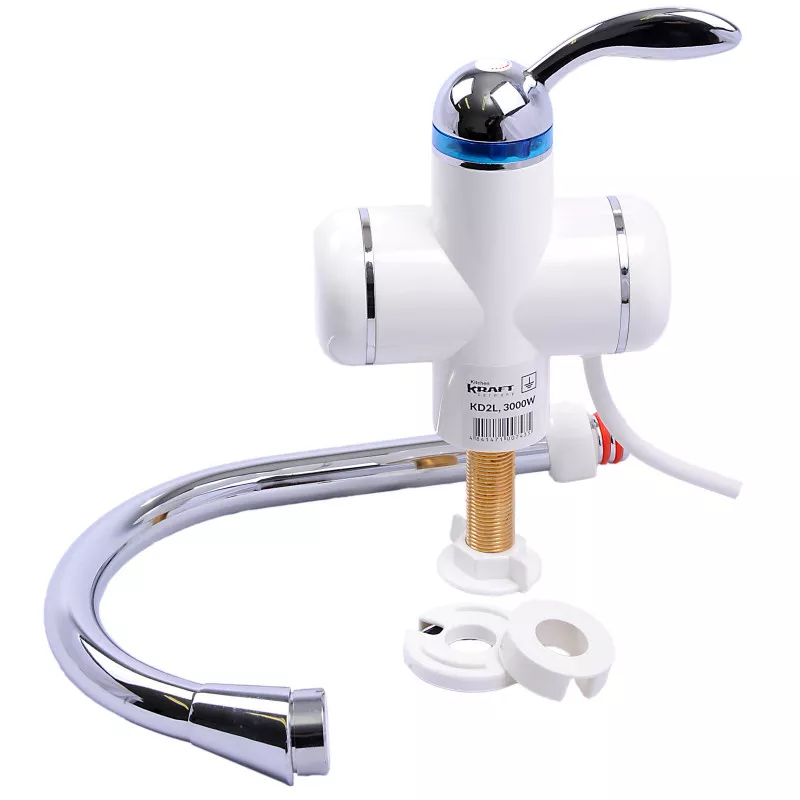 Электрический проточный водонагреватель kitchen kraft kd2l, проточный, 2 квт, 230, 50 в, гц, 30-65°с, вертикальная установка