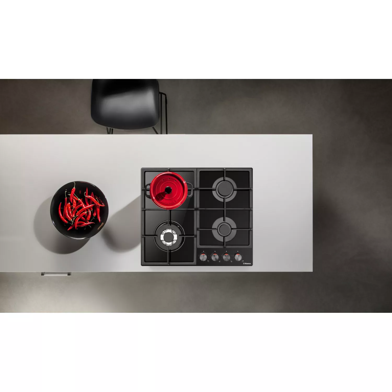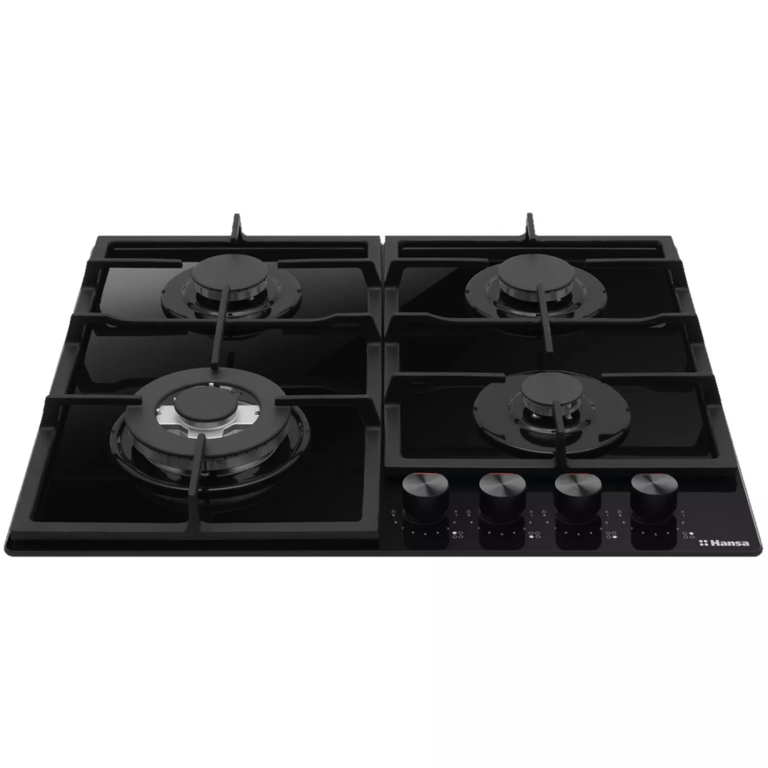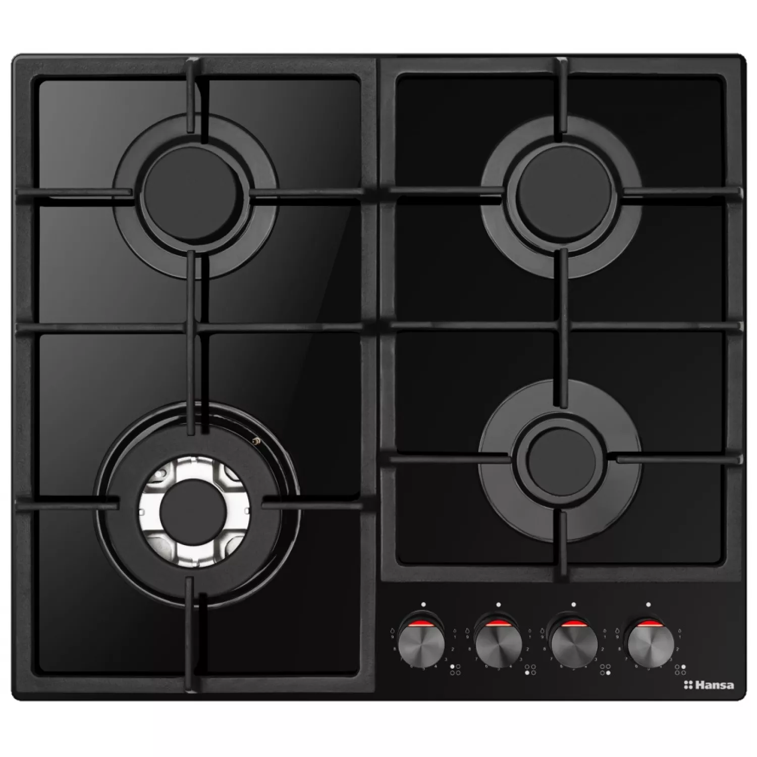 Варочная газовая панель hansa bhks631540, 4 конфорки, конфорка wok, закаленное стекло, механическое управление, черный