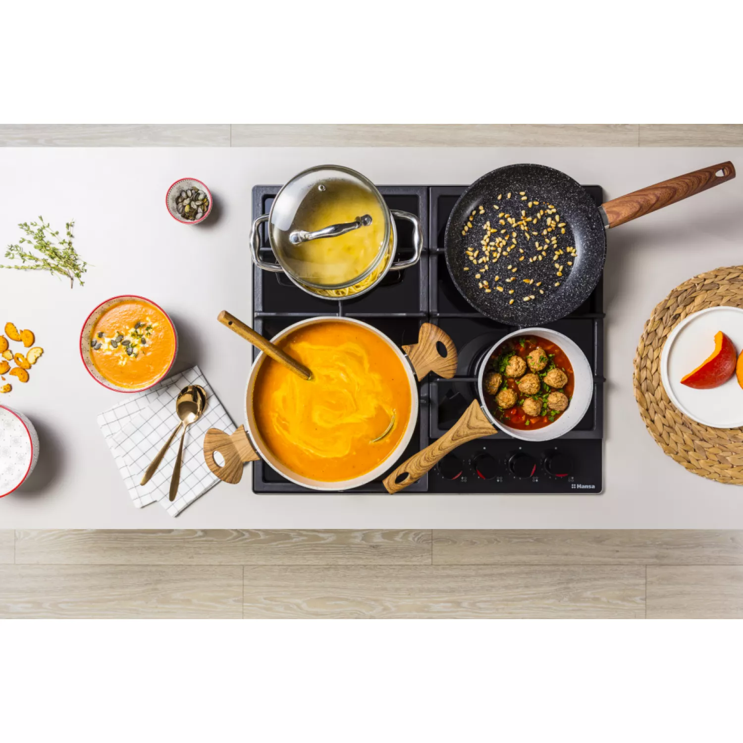 Характеристики для Варочная газовая панель HANSA BHKS631540, 4 конфорки, Конфорка Wok, Закаленное стекло, Механическое управление, Черный