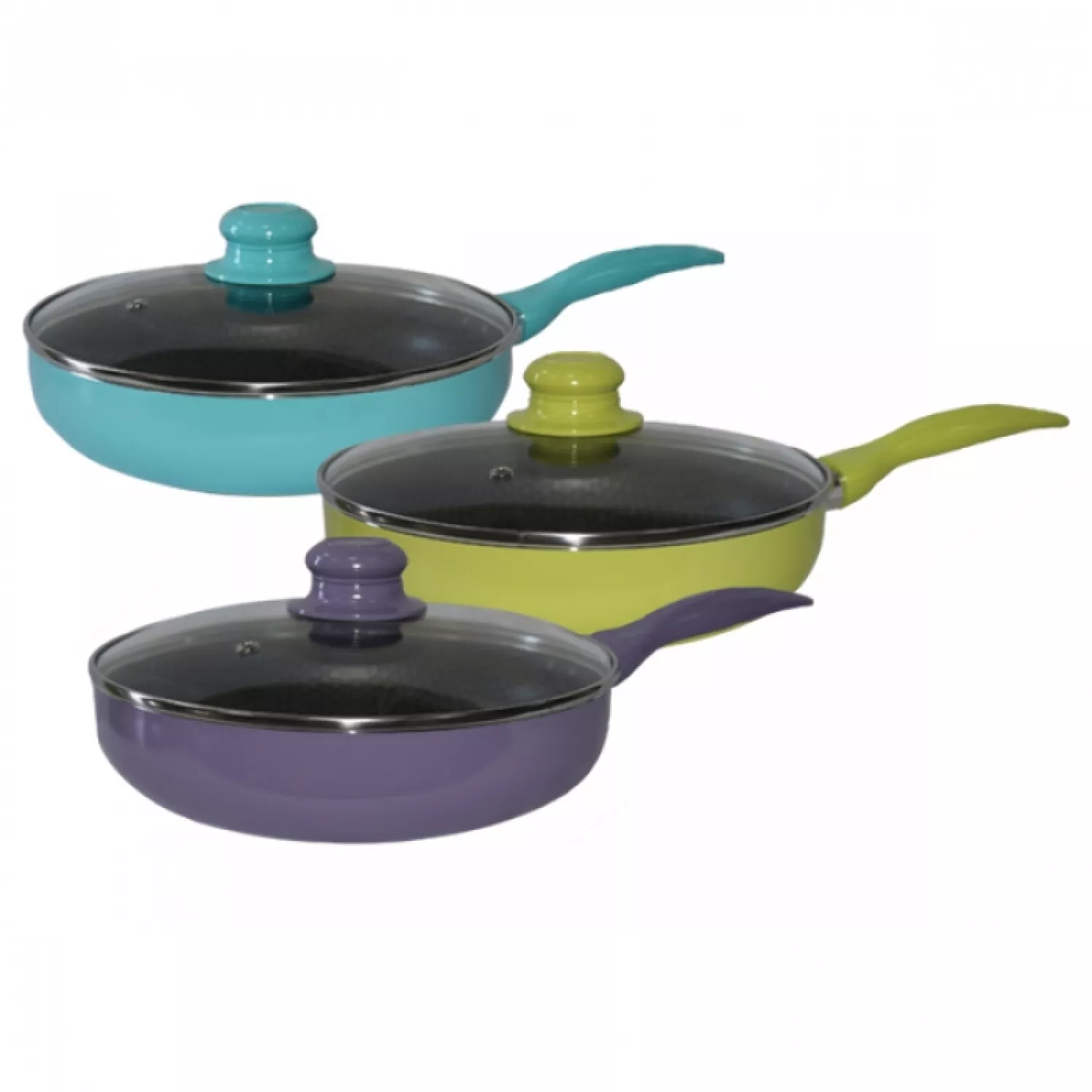 Сковорода с крышкой maestro mr-1202-28, 28 см, алюминий, керамическое антипригарное покрытие , жёлтый, фиолетовый, голубой