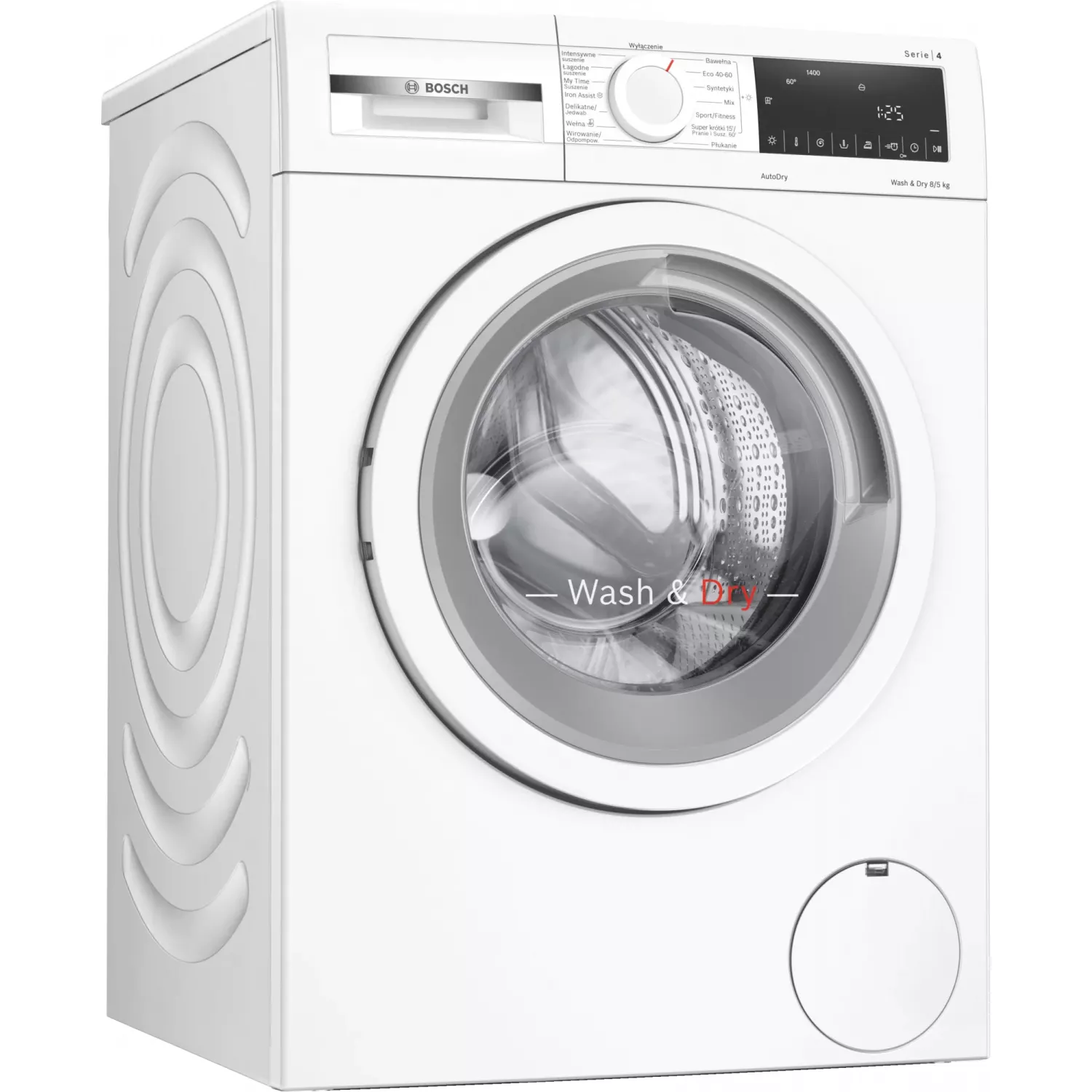 Стиральная машина с сушкой bosch wna13401pl, полноразмерная, 8 кг, 1400 об/мин, 14 программ, белый, a