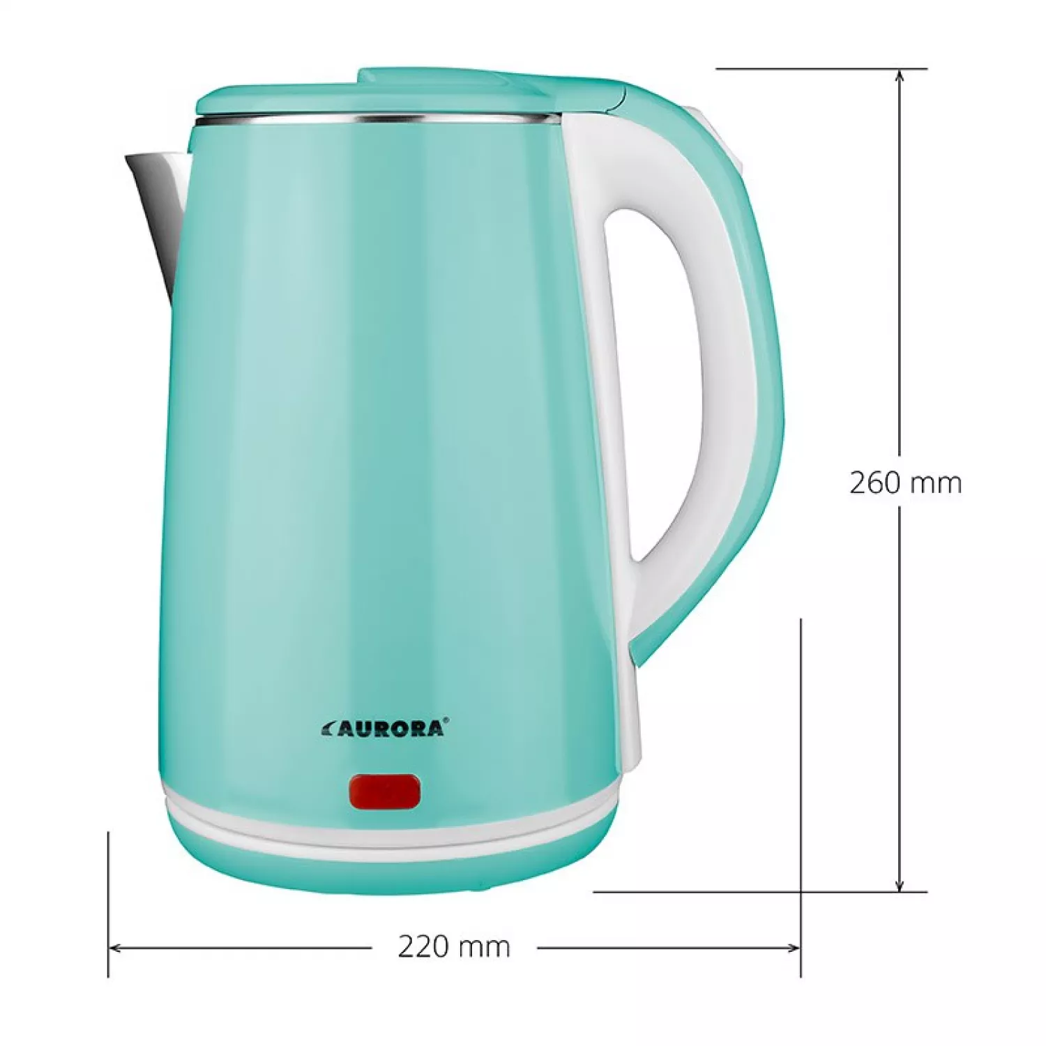 Электрочайник aurora au3408, 2 л, 1750 вт, нержавеющая сталь, пластик, бирюзовый