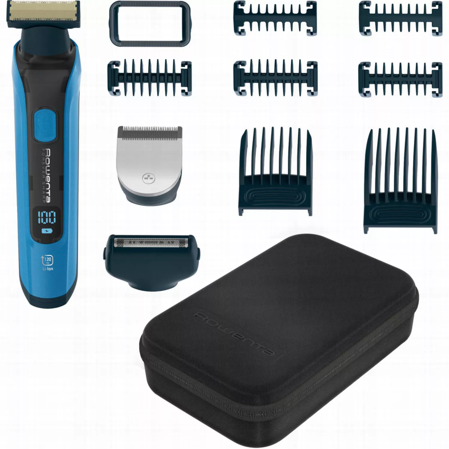 Триммер rowenta tn6200f4, аккумулятор, 15 настроек длины, 0.5-17 мм, синий, черный