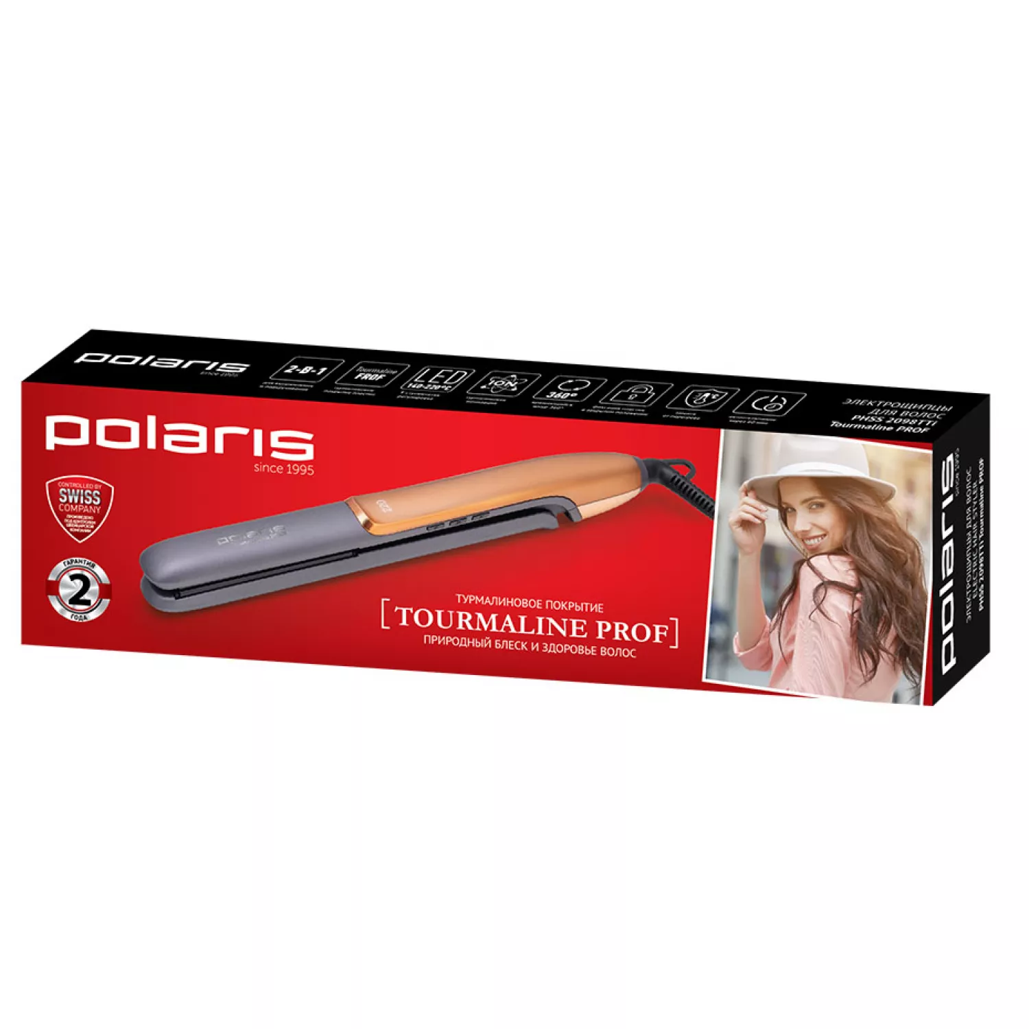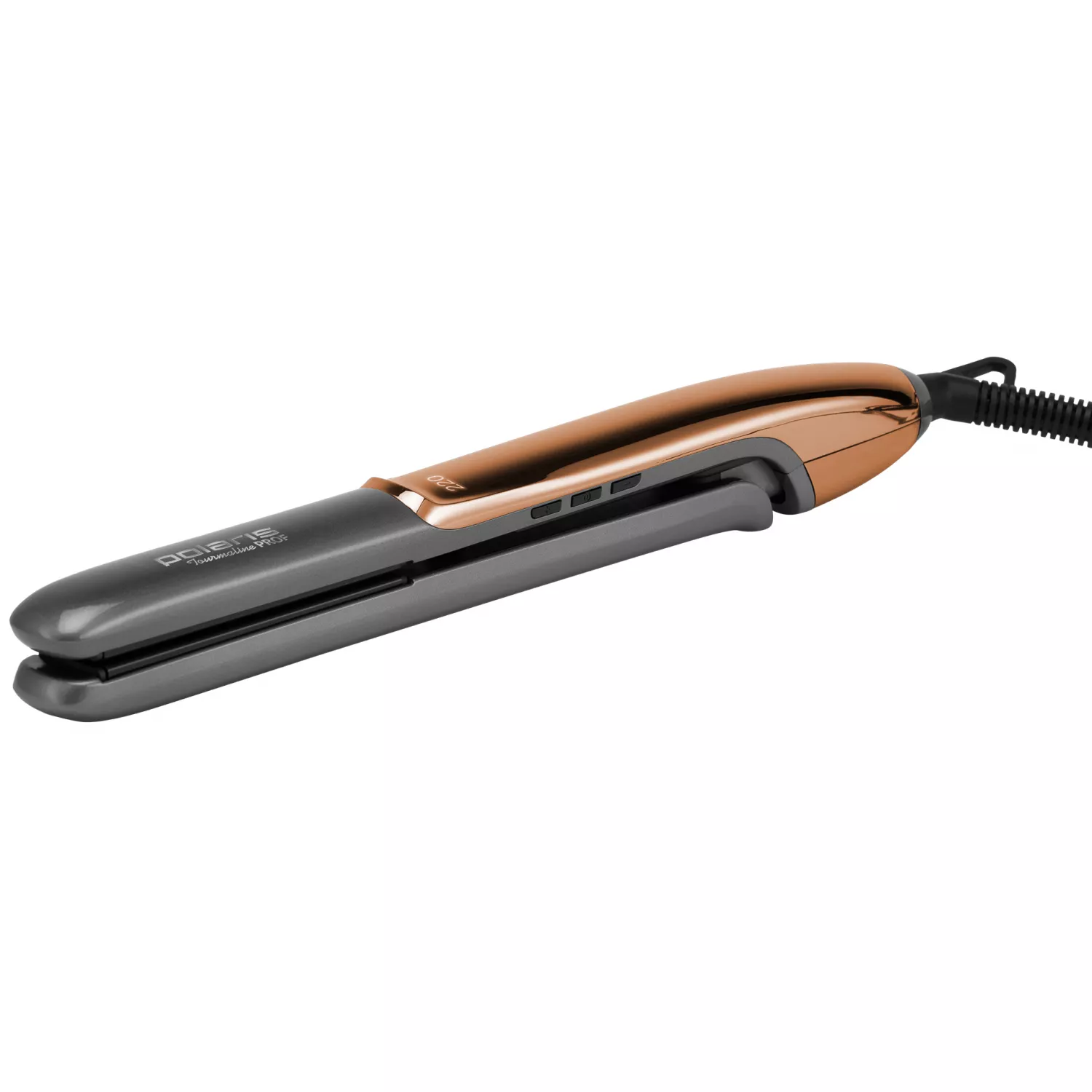 Характеристики для Утюжок для волос POLARIS PHSS 2098TTI, Tourmaline PROF, 25 х 95 мм, 220 С, 5 режимов, Серый, Золотистый
