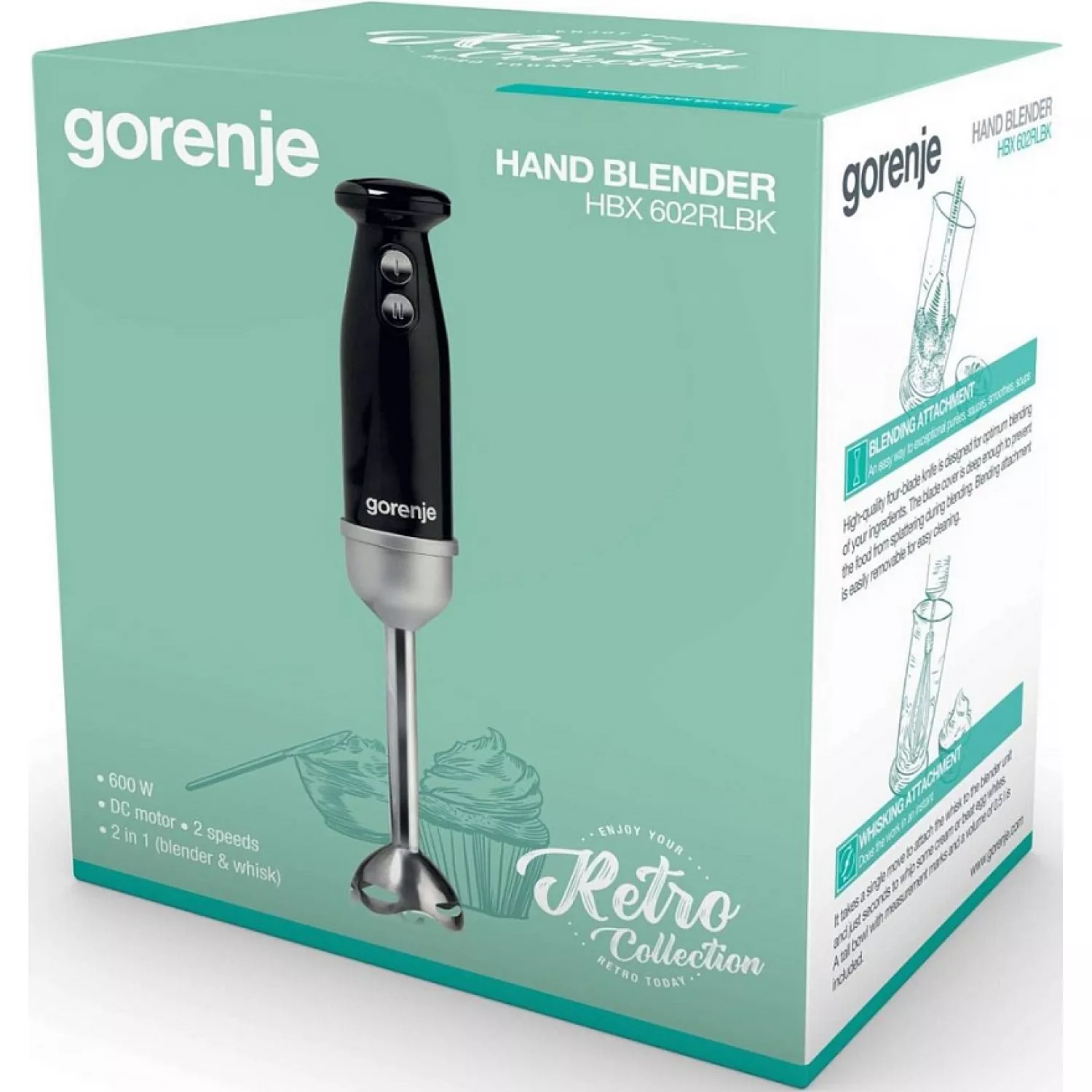 Характеристики для Блендер GORENJE HBX602RLBK, 600 Вт, 0.6 л, 2 скорости, Импульсный режим, Черный