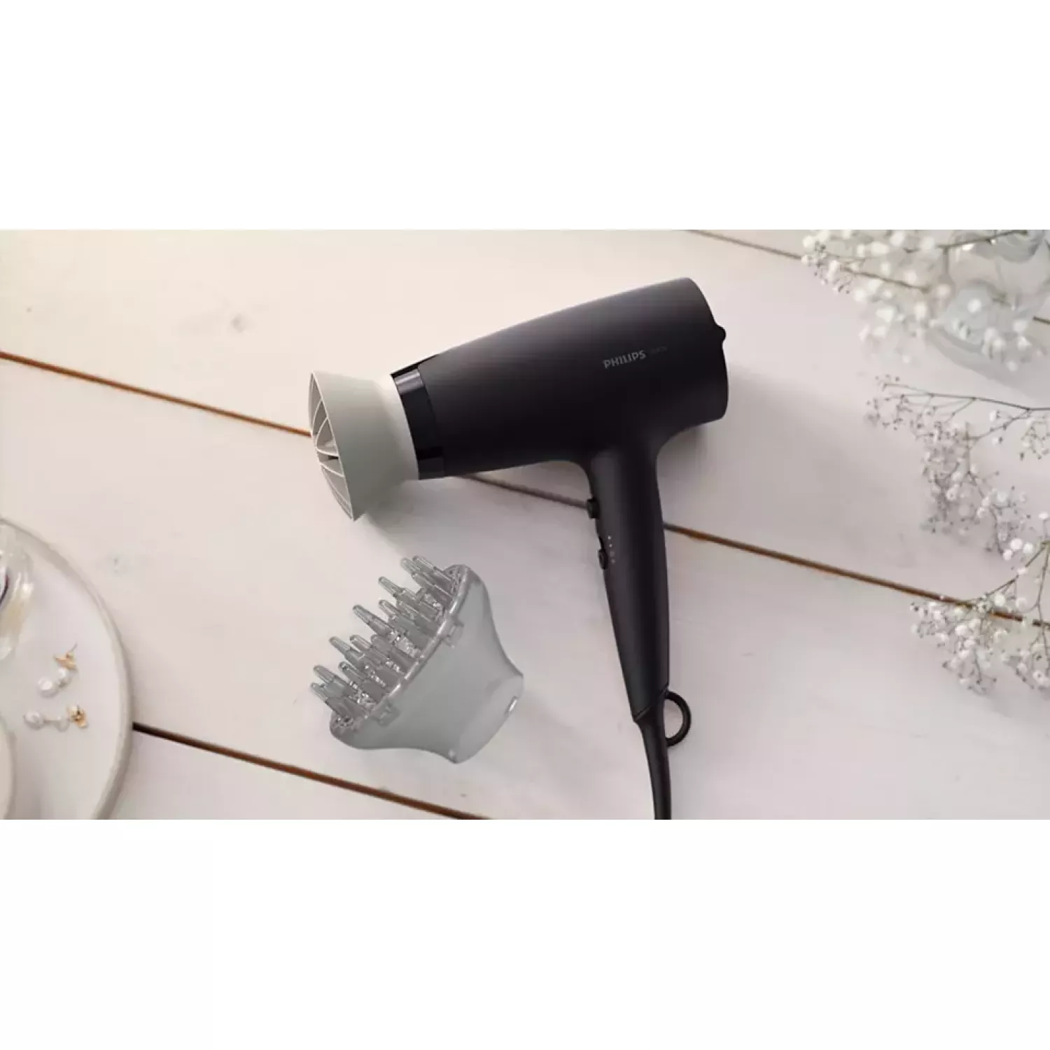 Фен philips bhd302/30, 1600 вт, 3 скорости, 3 температурных режима, черный, серый